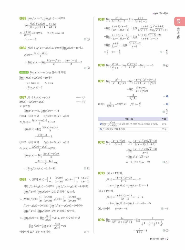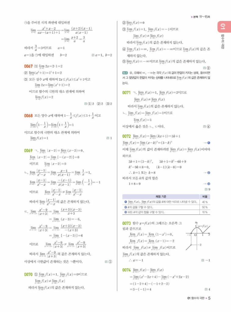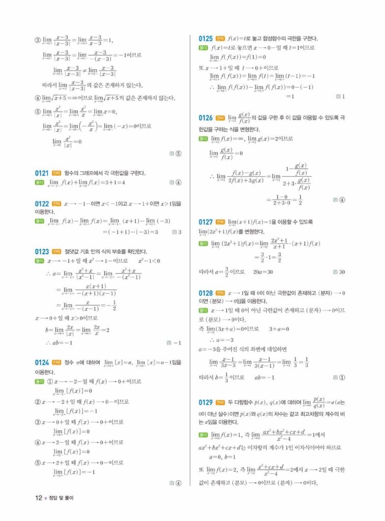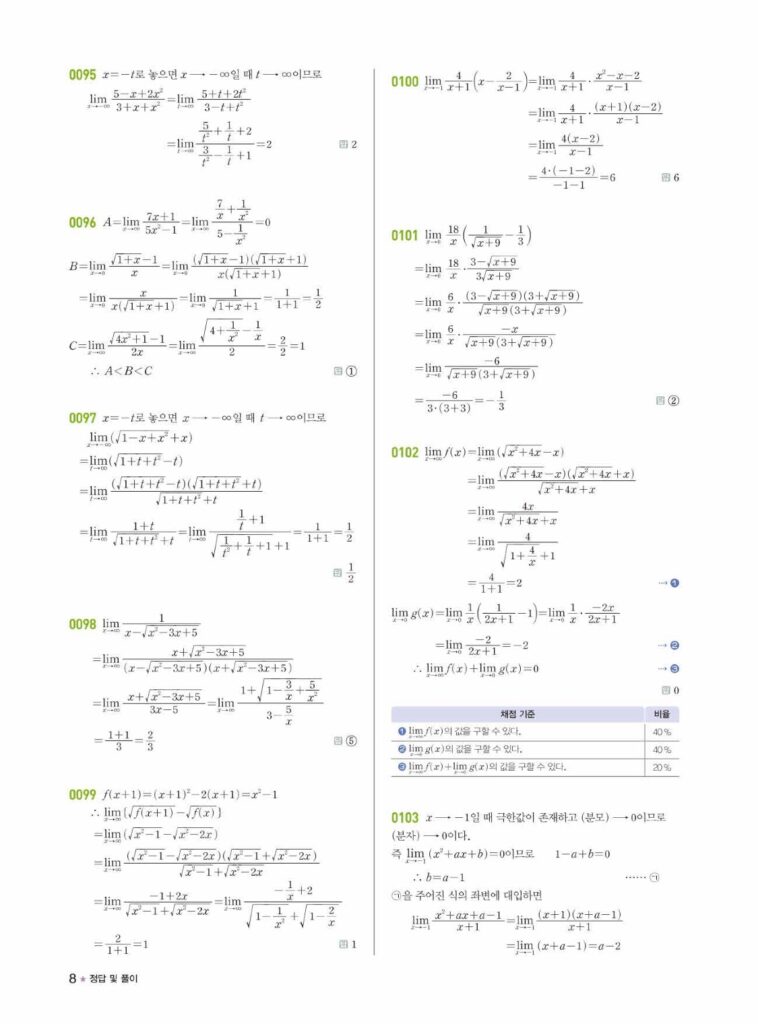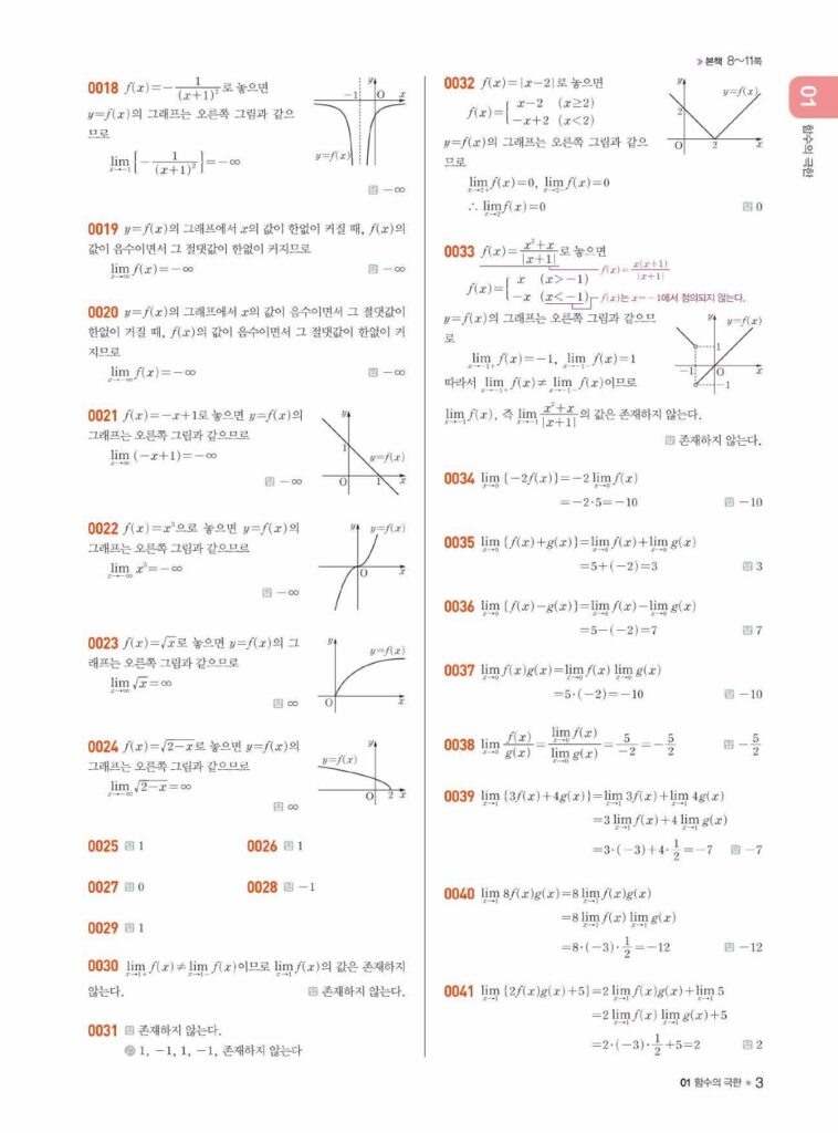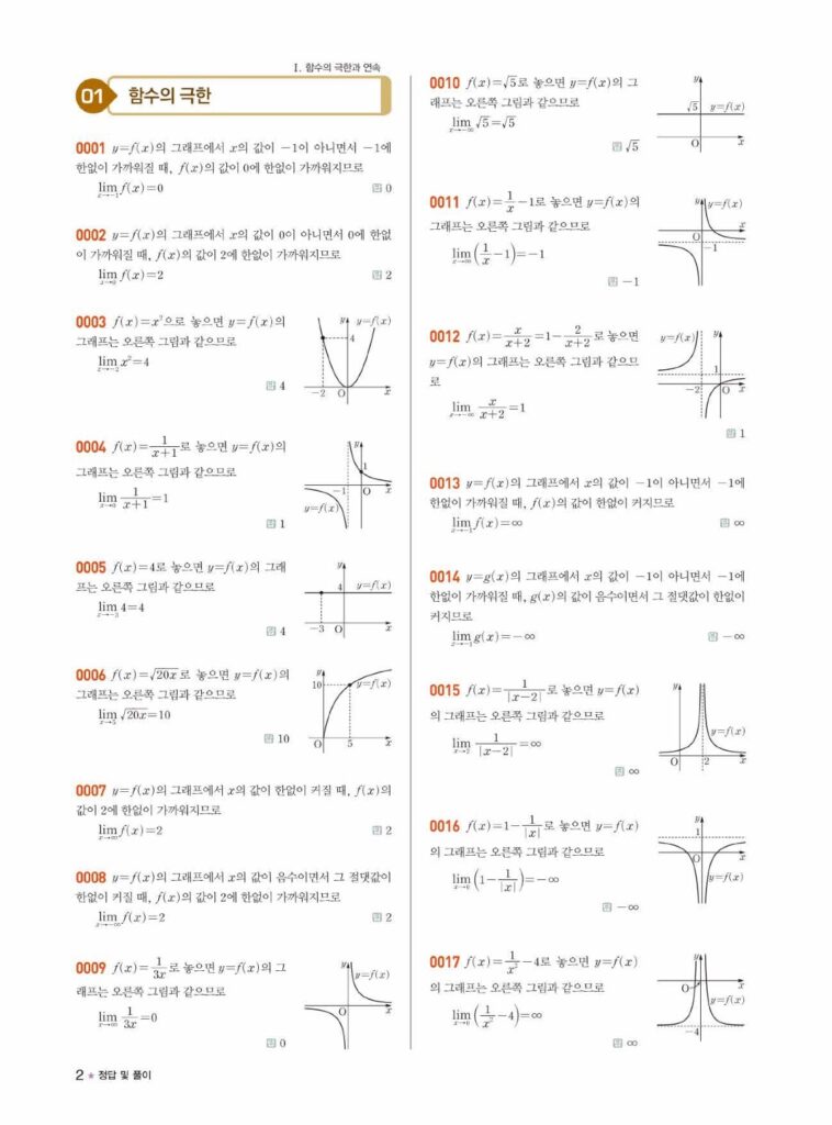 안녕하세요. **라이트쎈 미적분1** **01단원 함수의 극한** 정답 및 해설입니다.