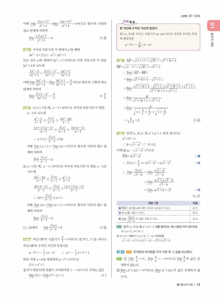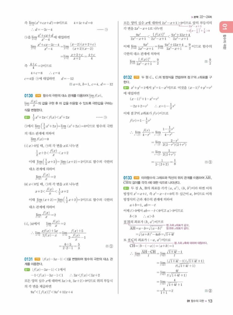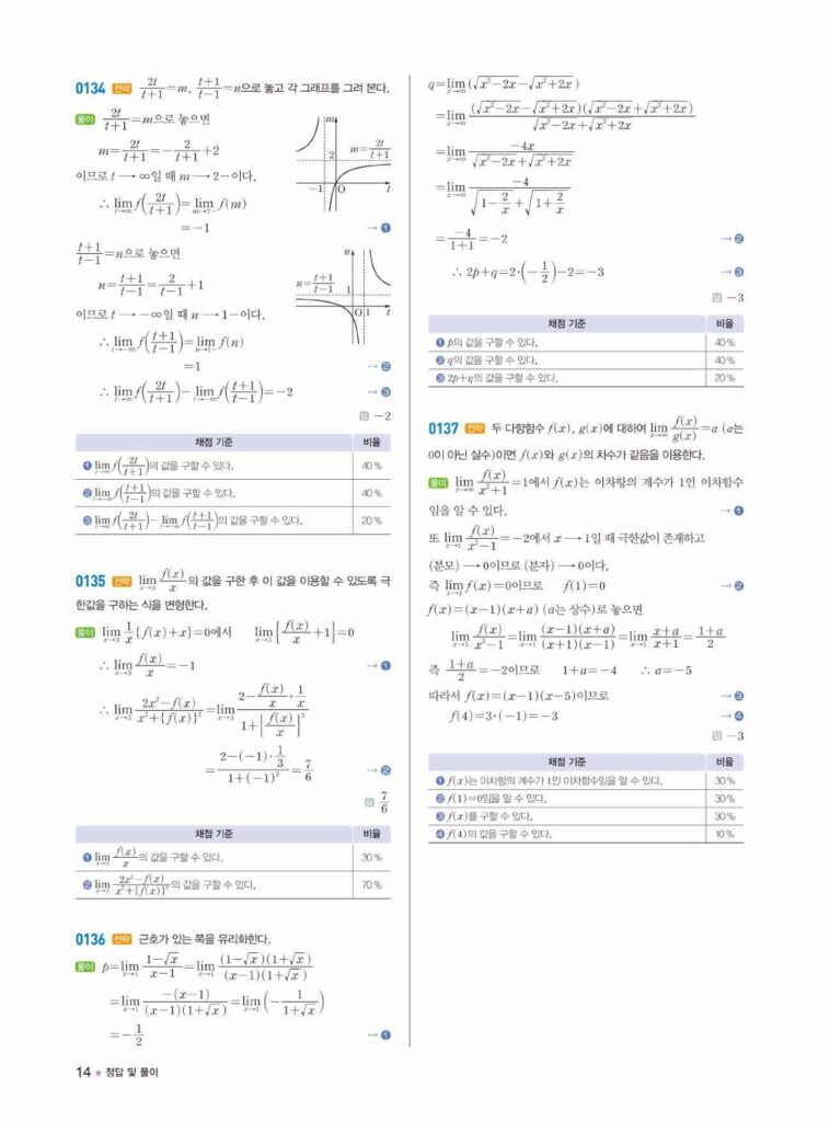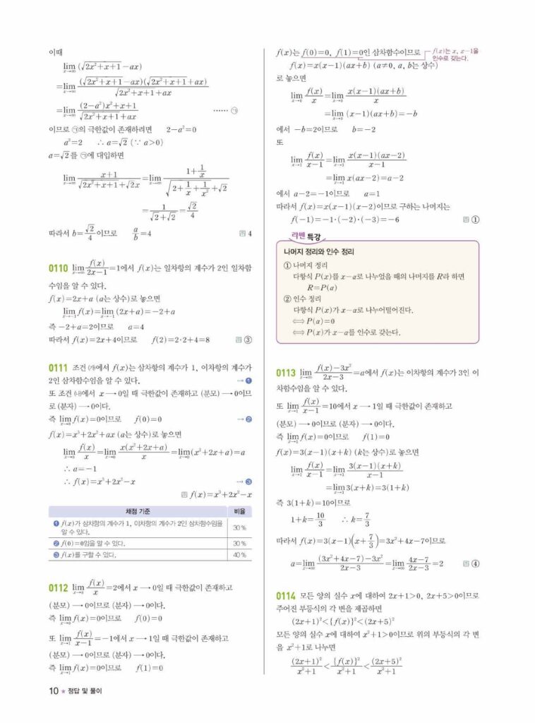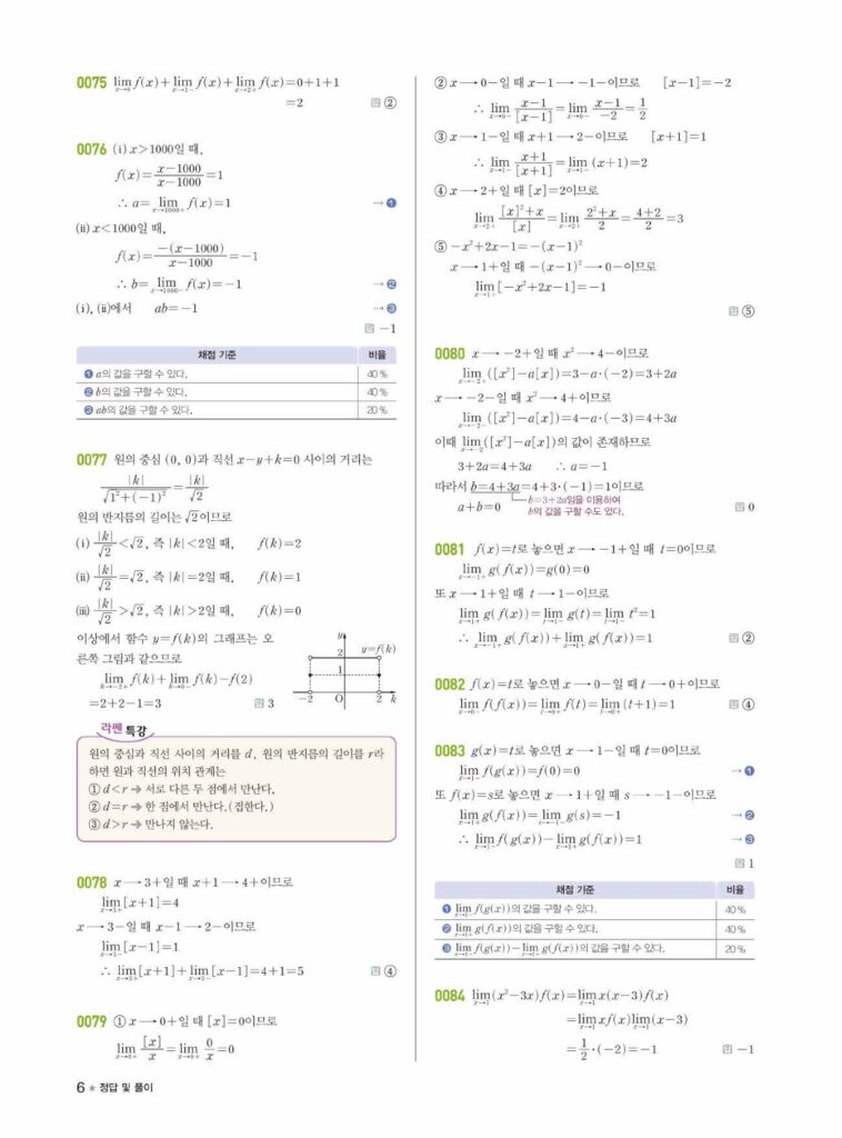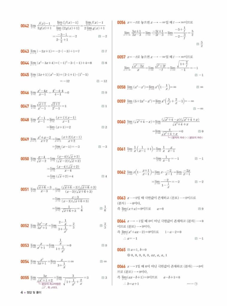 안녕하세요. **라이트쎈 미적분1** **01단원 함수의 극한** 정답 및 해설입니다.
