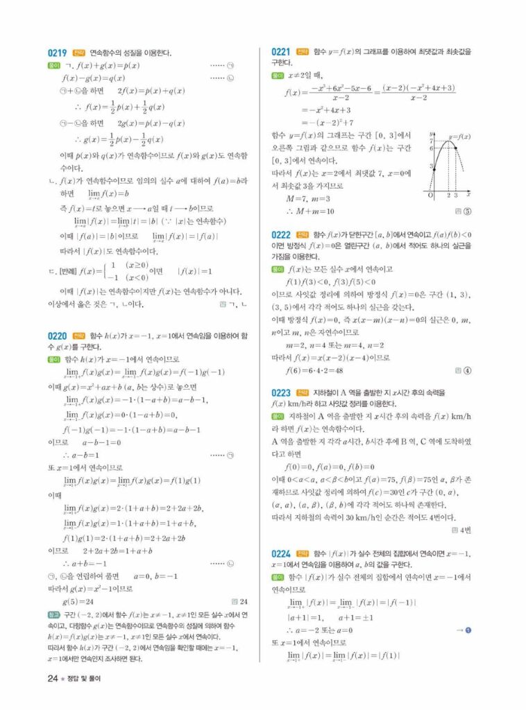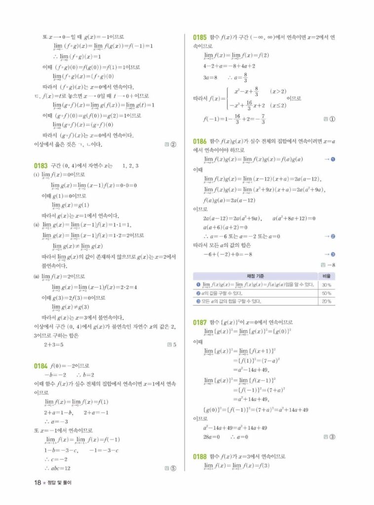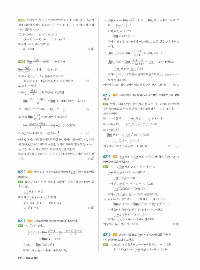 안녕하세요. **라이트쎈 미적분1** **02단원 함수의 연속** 정답 및 해설입니다.