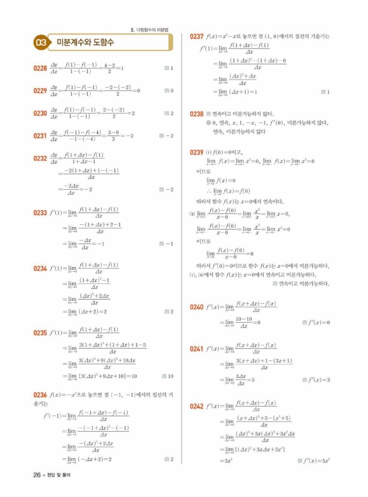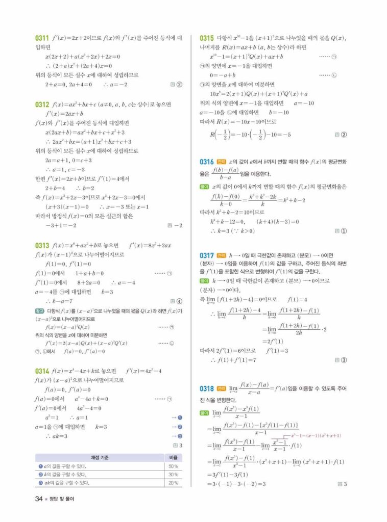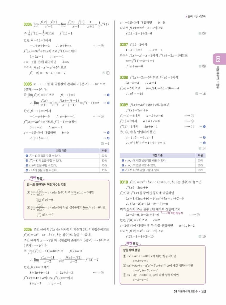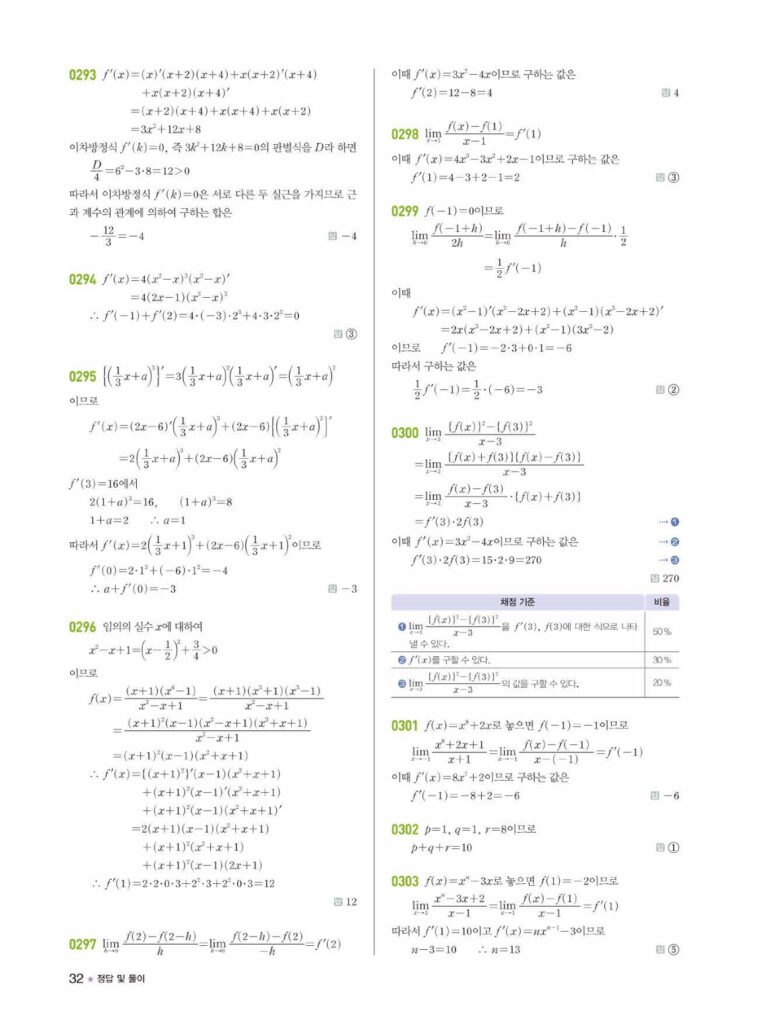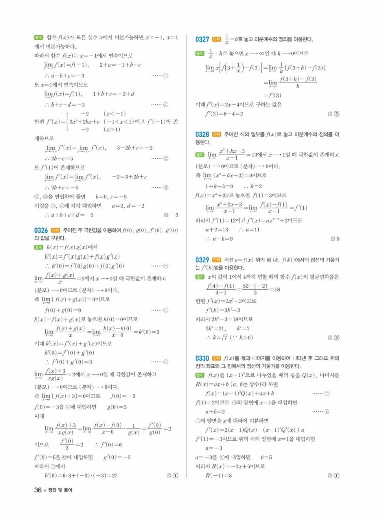 안녕하세요. **라이트쎈 미적분1** **03단원 미분계수와 도함수** 정답 및 해설입니다.