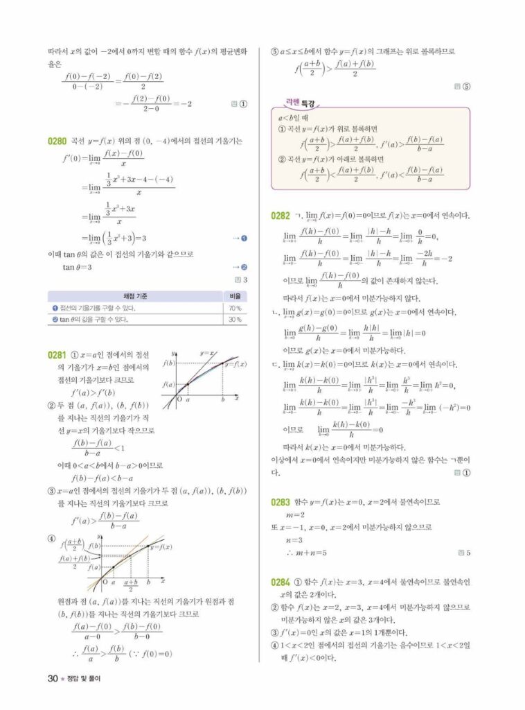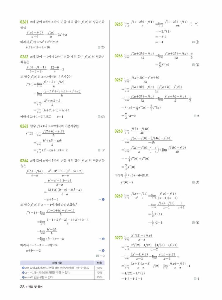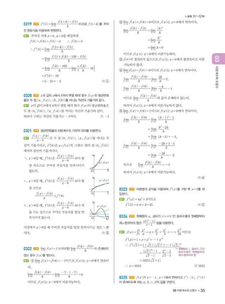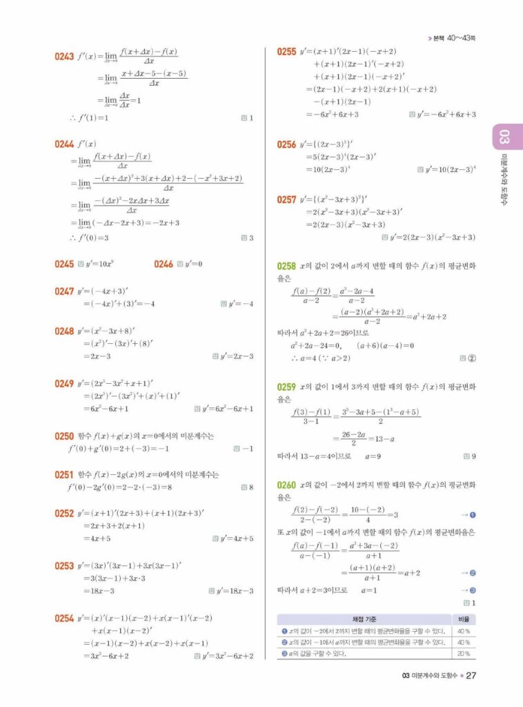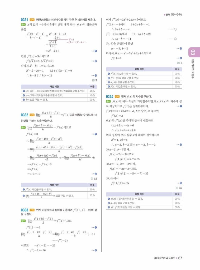 안녕하세요. **라이트쎈 미적분1** **03단원 미분계수와 도함수** 정답 및 해설입니다.