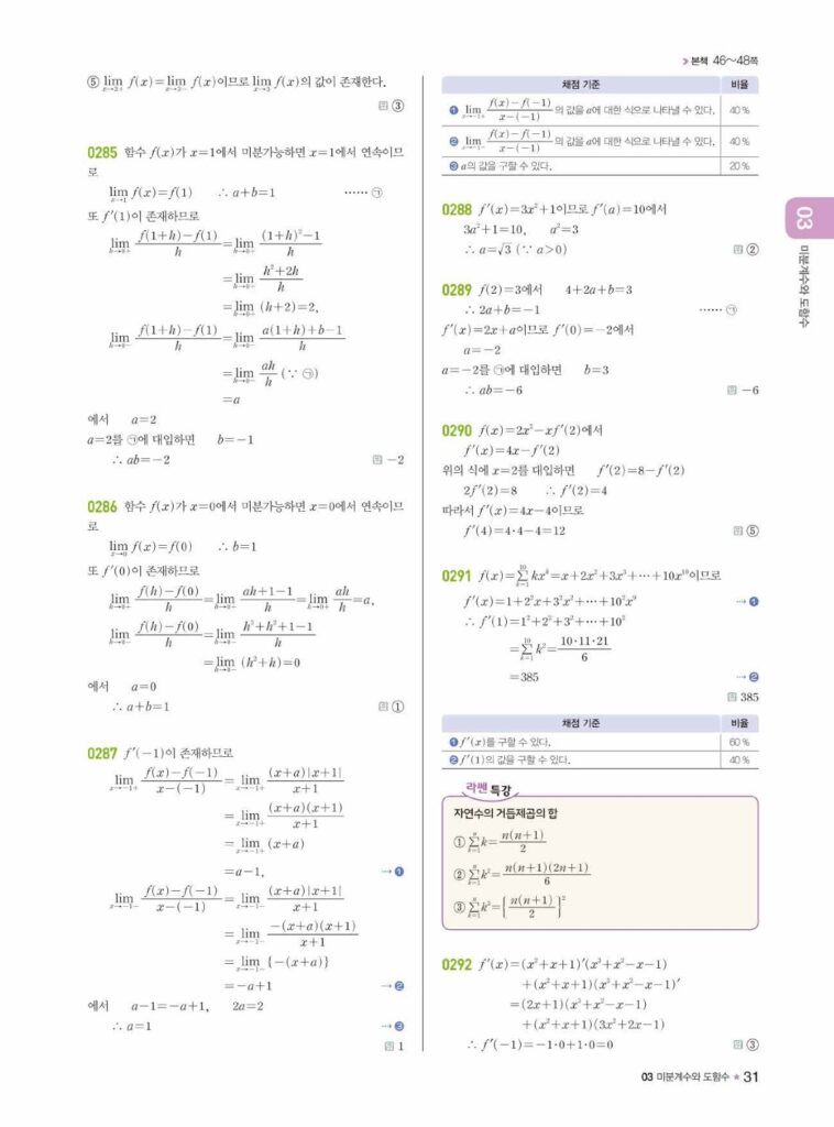 라이트쎈 미적분1 03. 미분계수와 도함수 답지