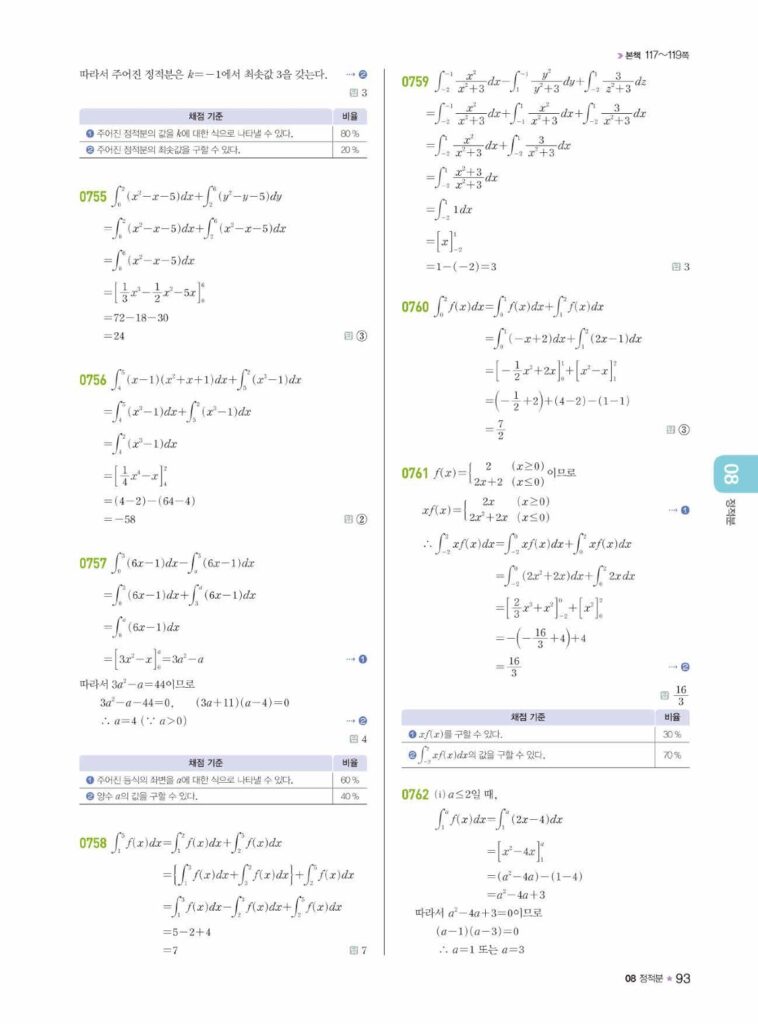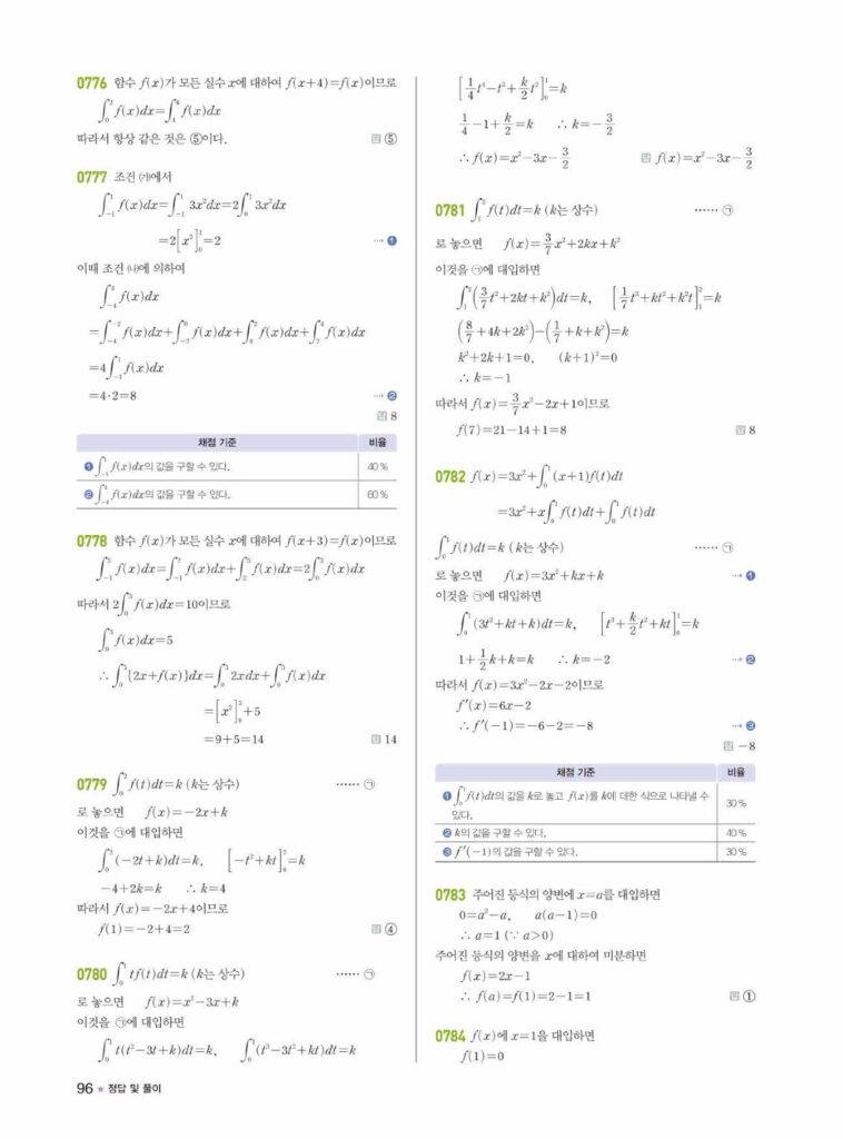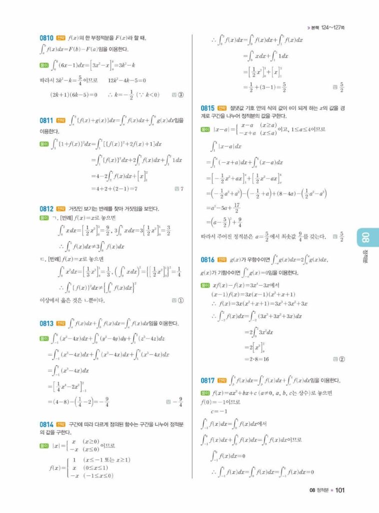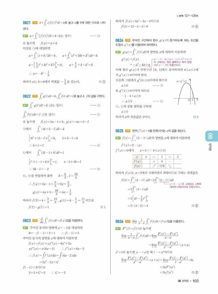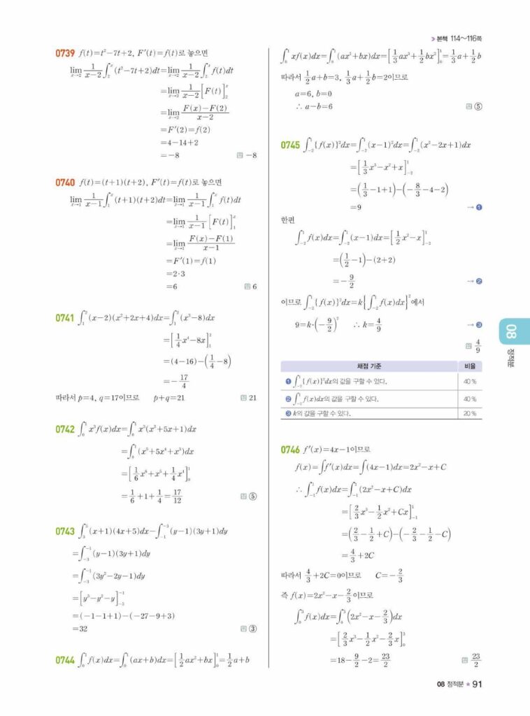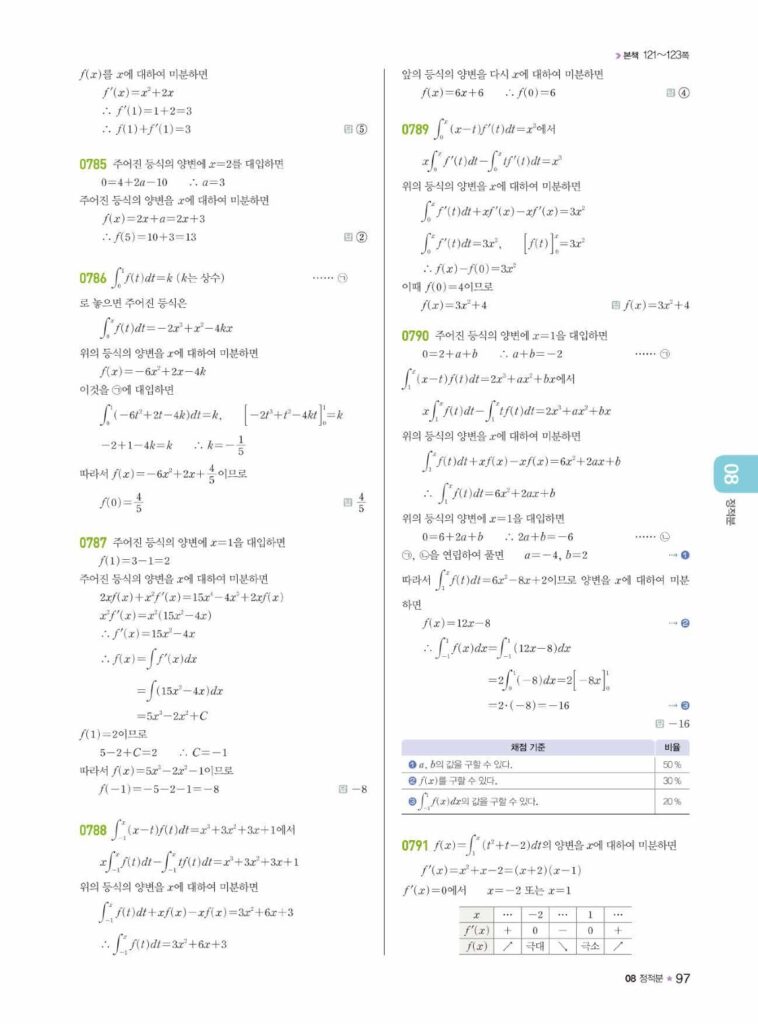 안녕하세요. **라이트쎈 미적분1** **08단원 정적분** 정답 및 해설입니다.