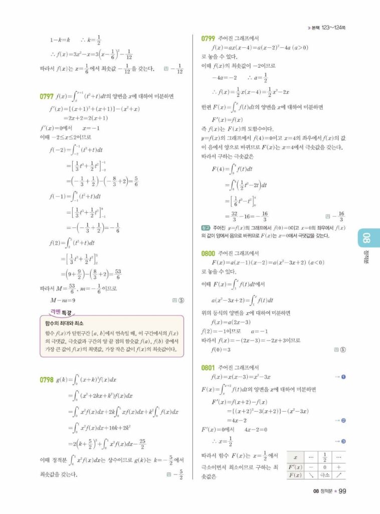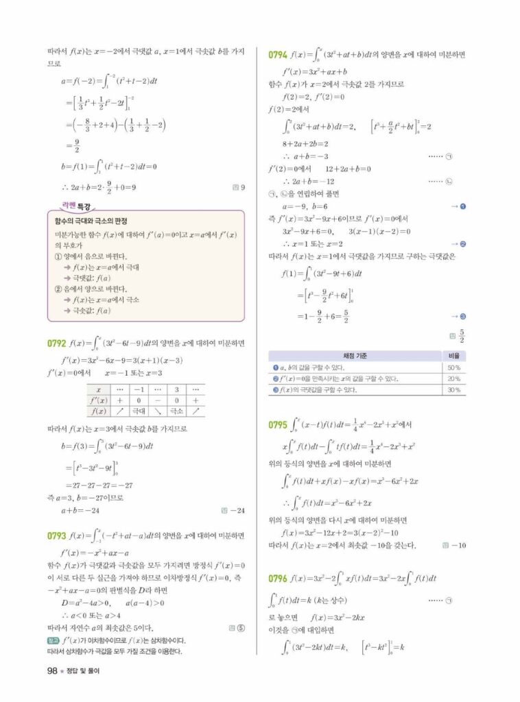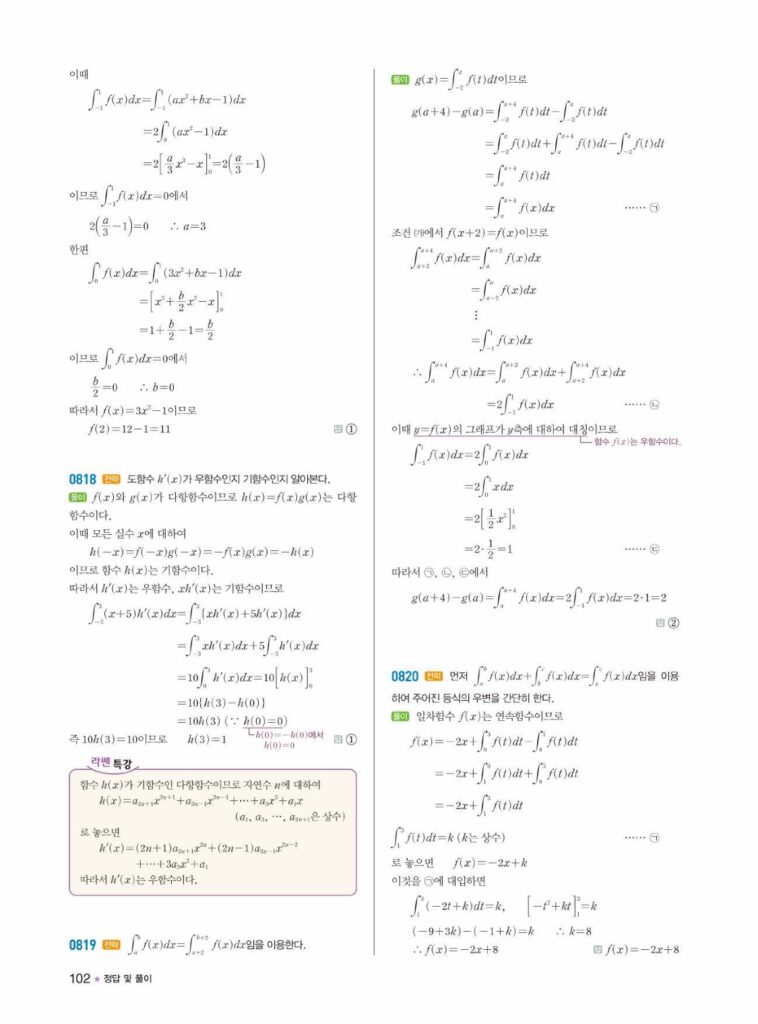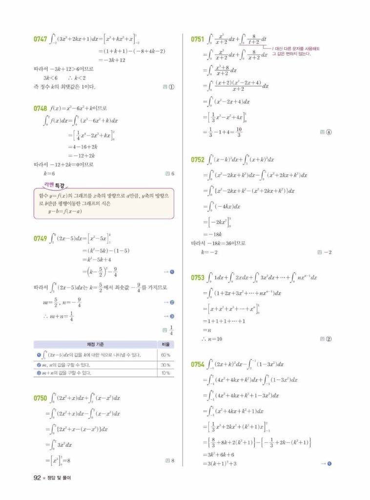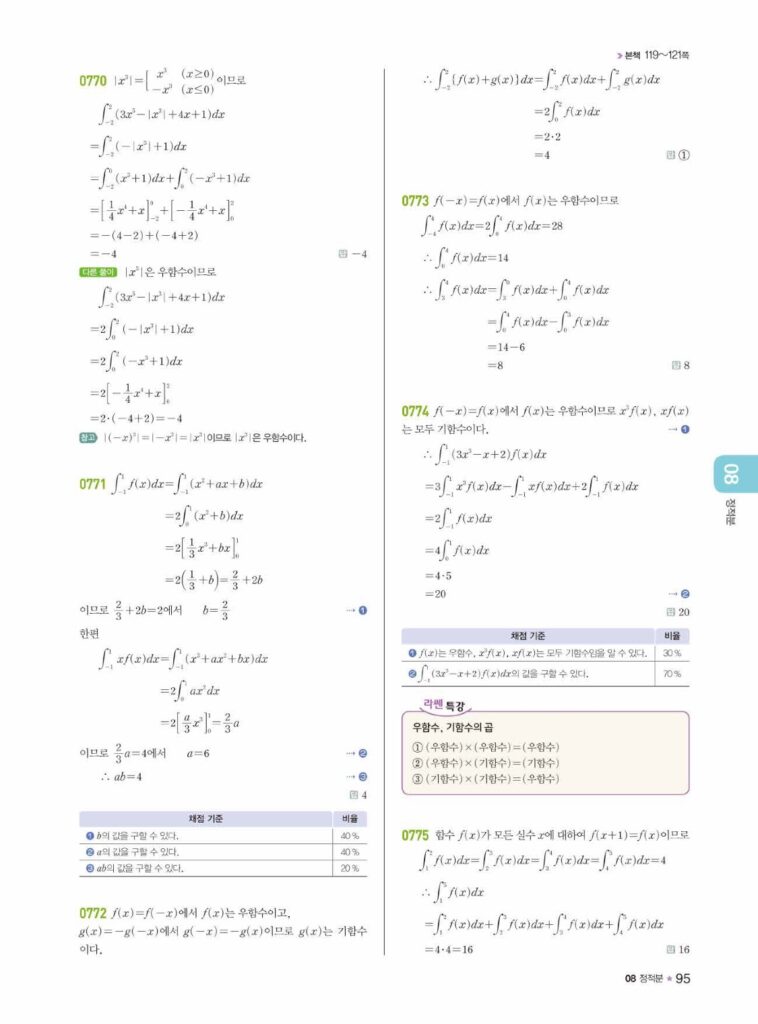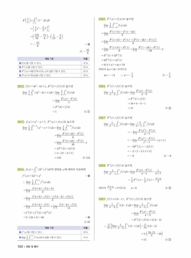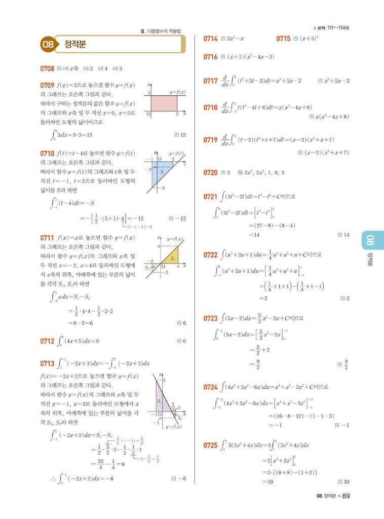 안녕하세요. **라이트쎈 미적분1** **08단원 정적분** 정답 및 해설입니다.