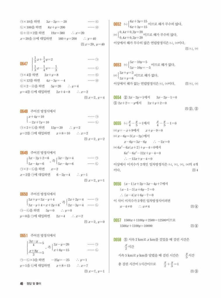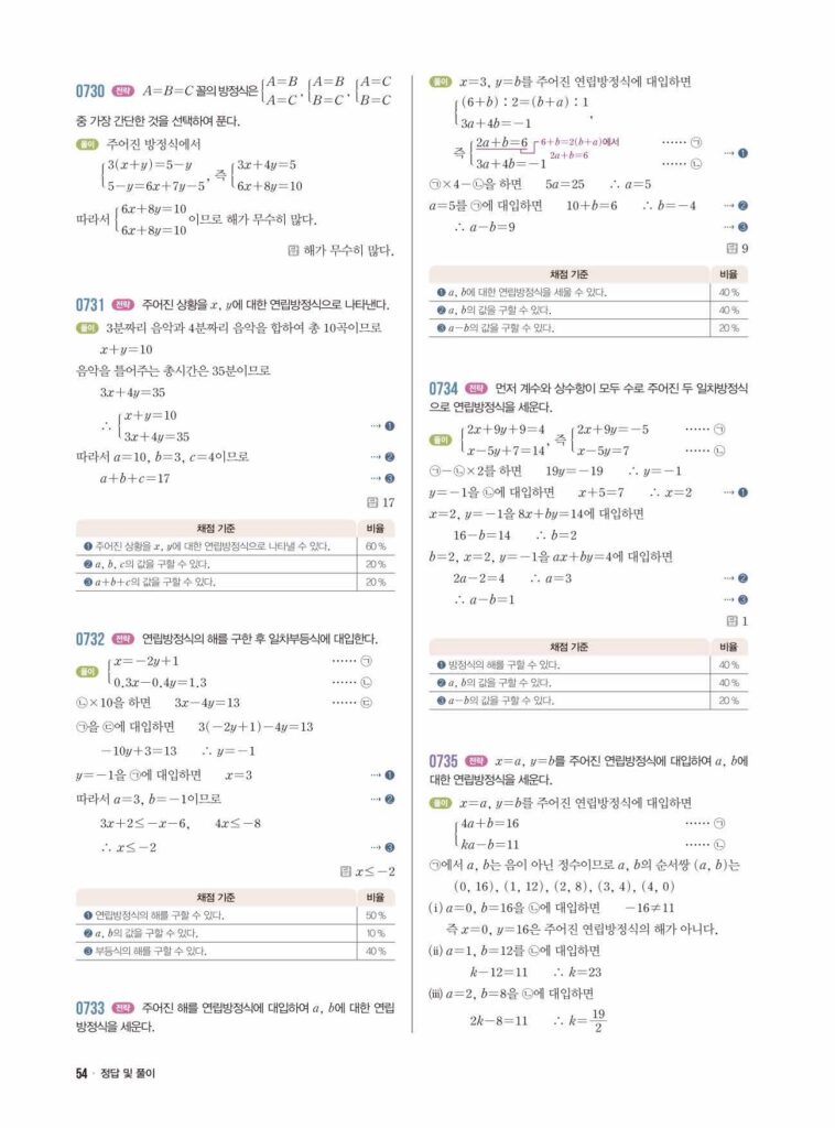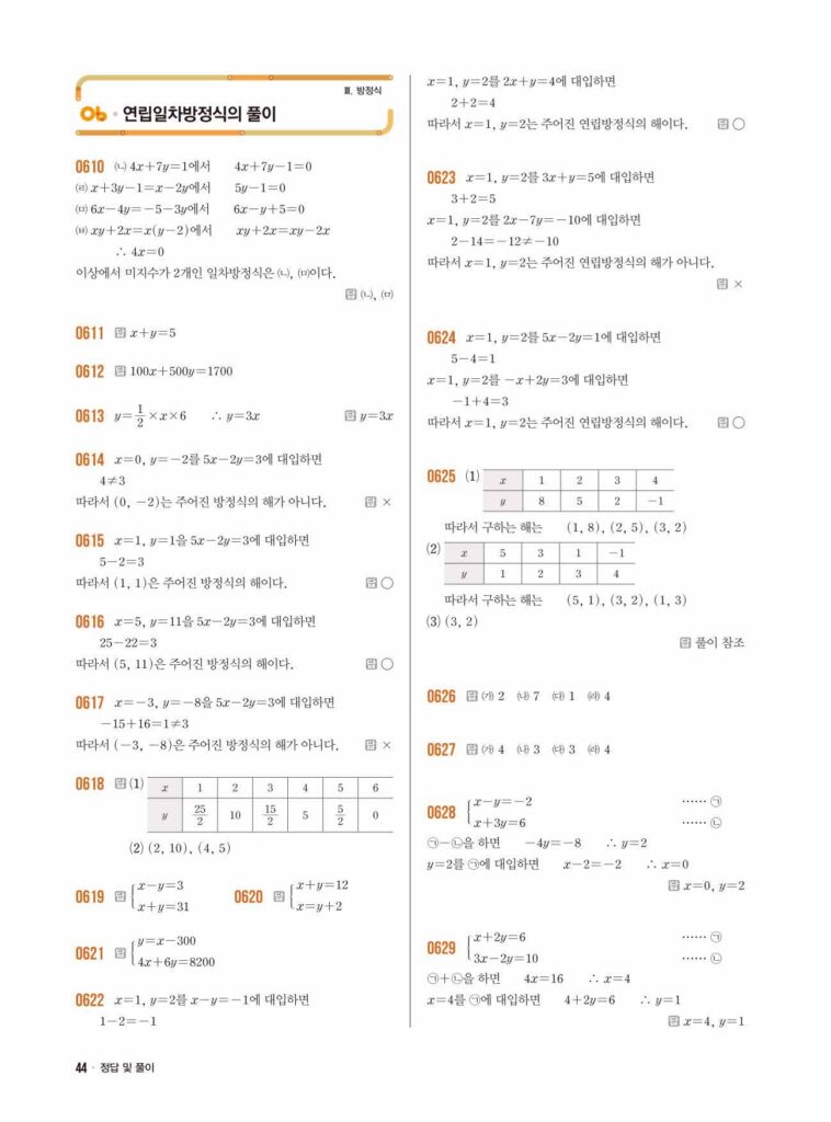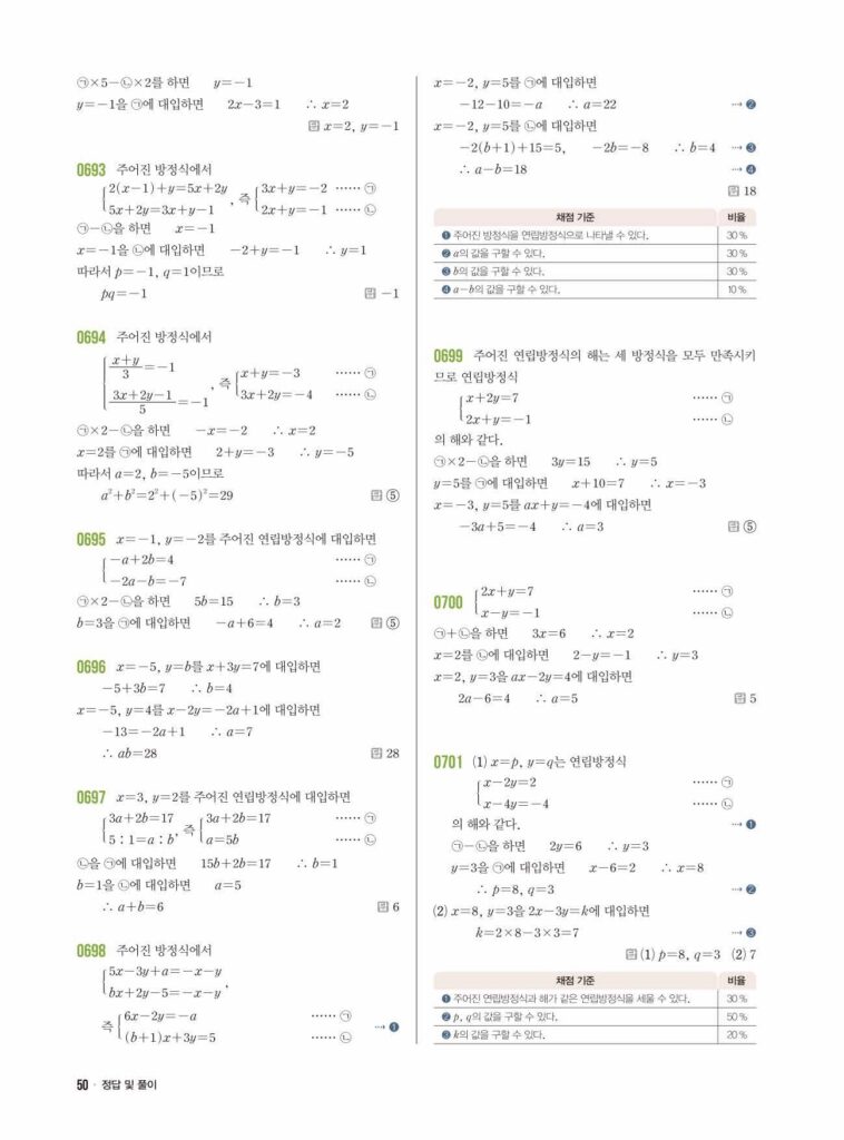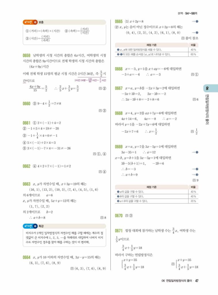 안녕하세요. **라이트쎈 중2-1** **06단원 연립일차방정식의 풀이** 정답 및 해설입니다.