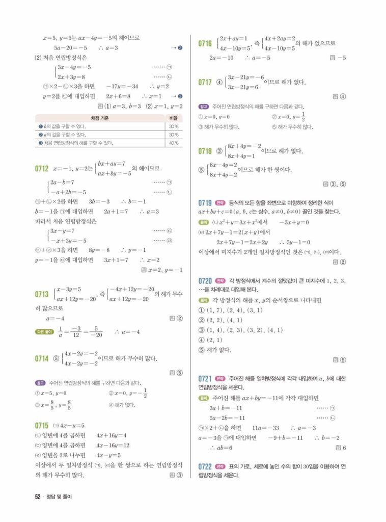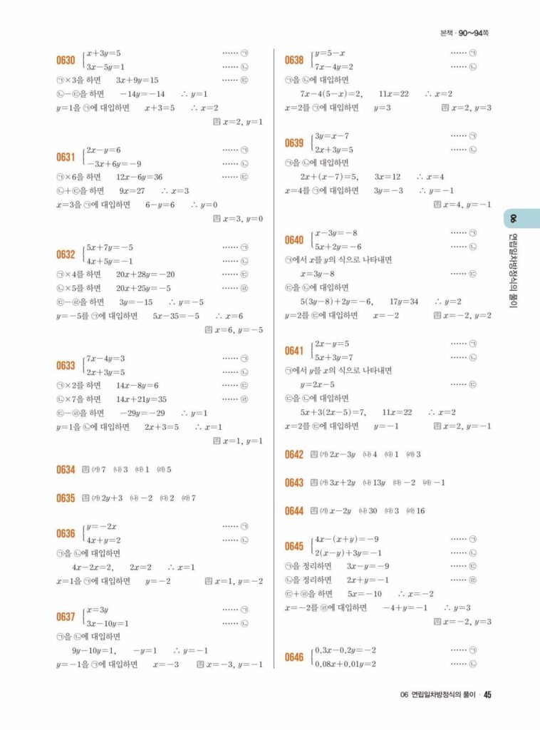 라이트쎈 중2-1 06. 연립일차방정식의 풀이 답지