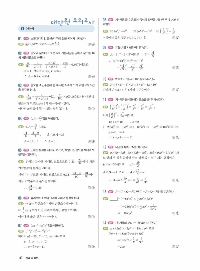 📂 라이트쎈 중2-1 답지 전체 모음 & 교점 특강 (클릭)