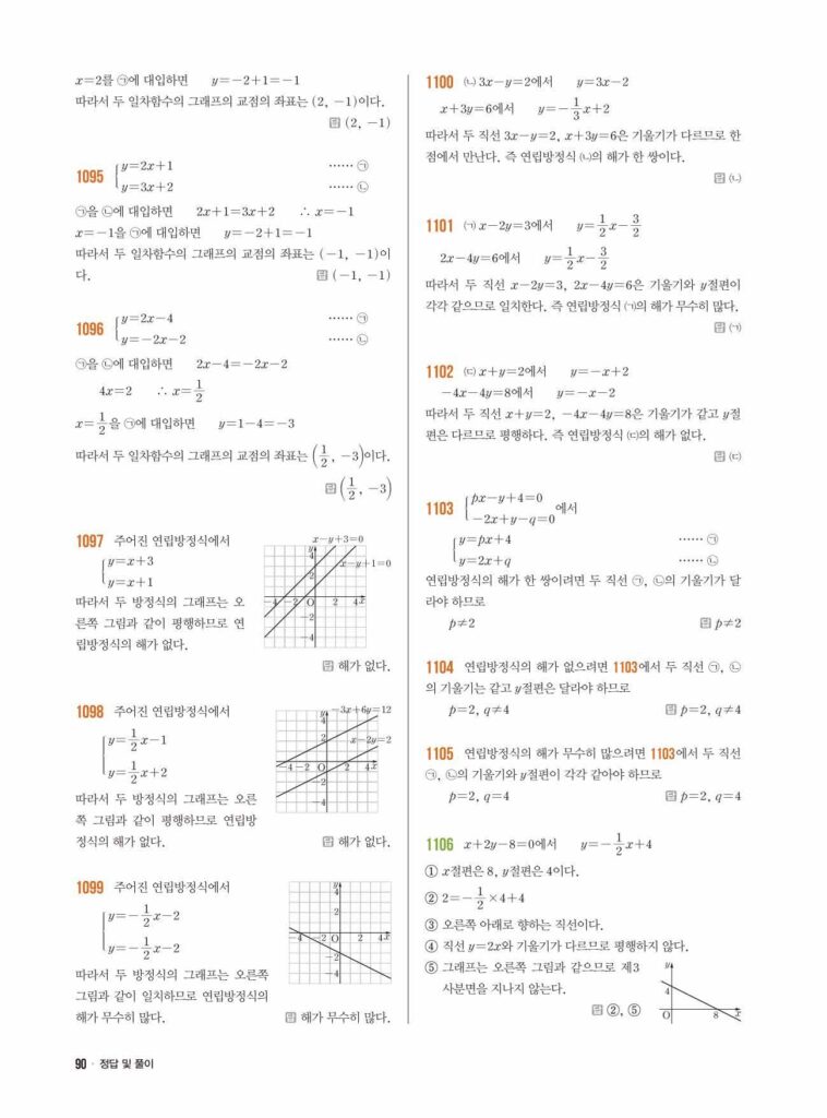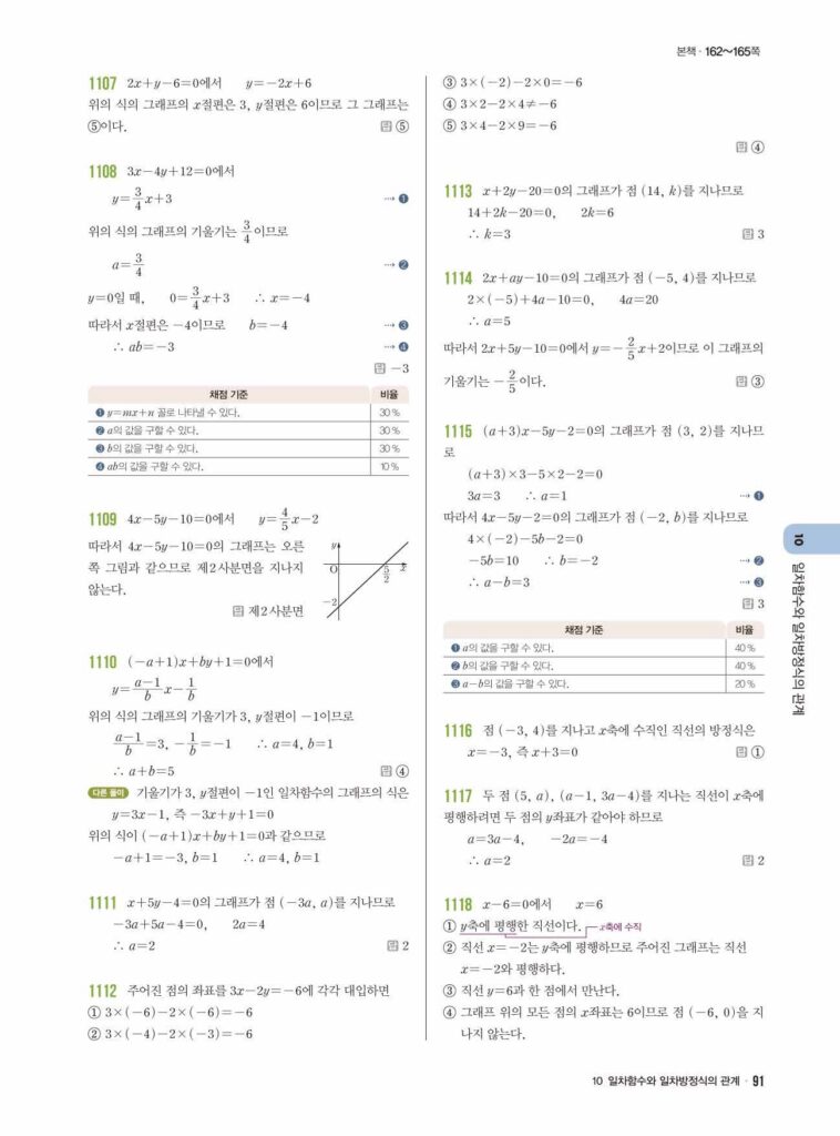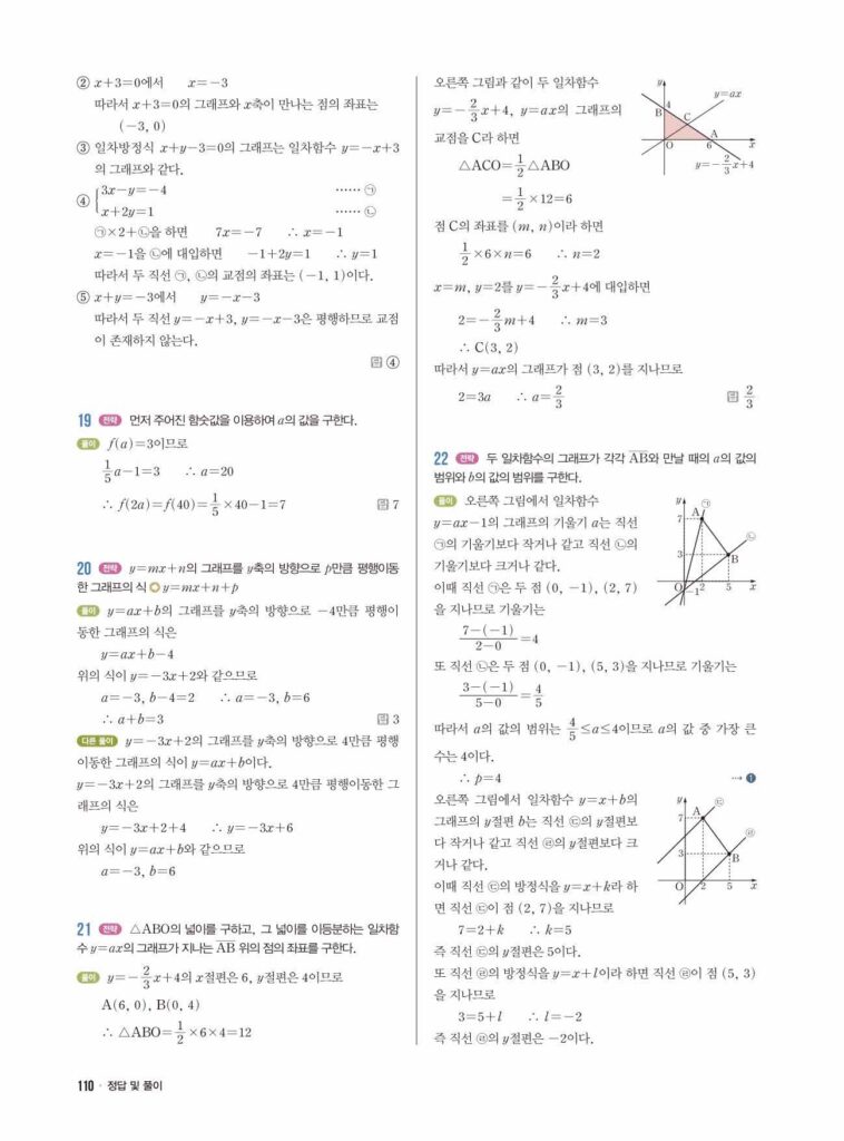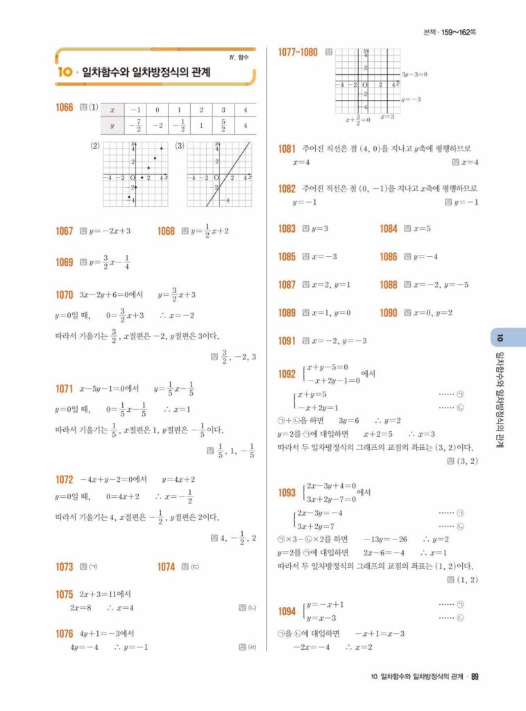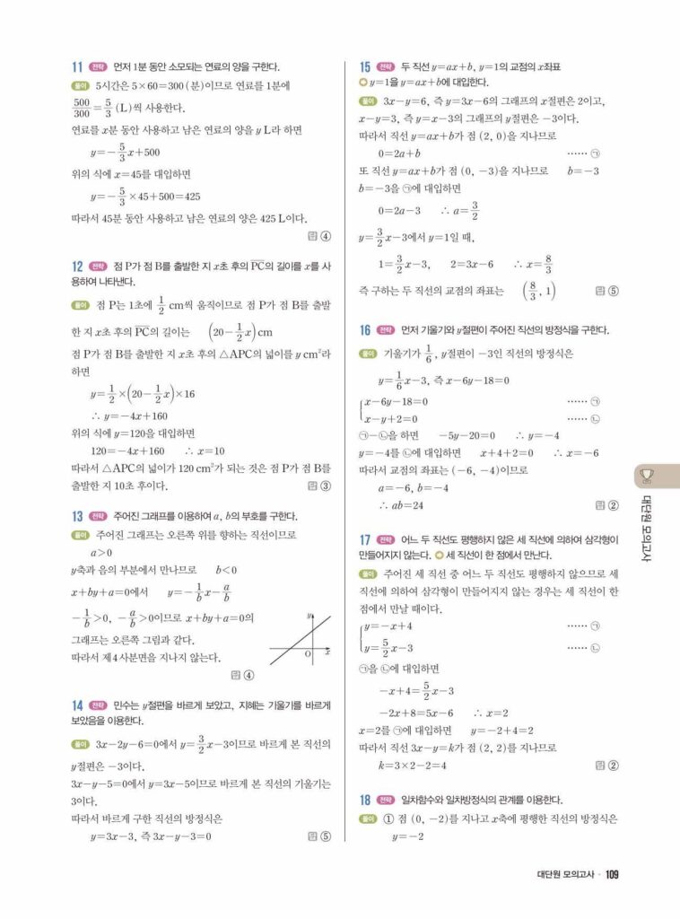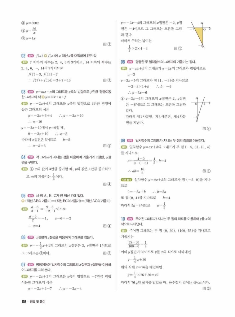 라이트쎈 중2-1 10. 일차함수와 일차방정식의 관계 답지