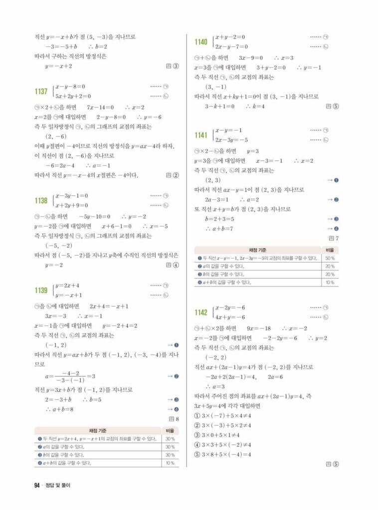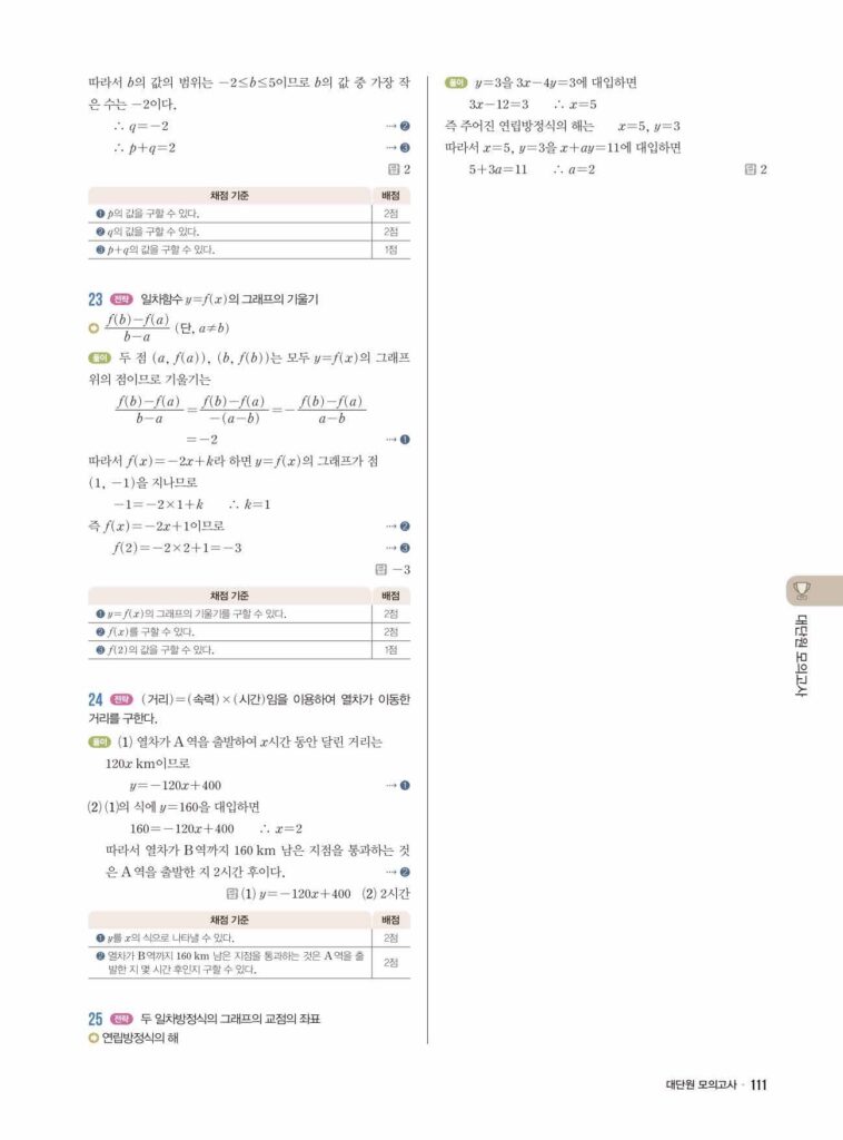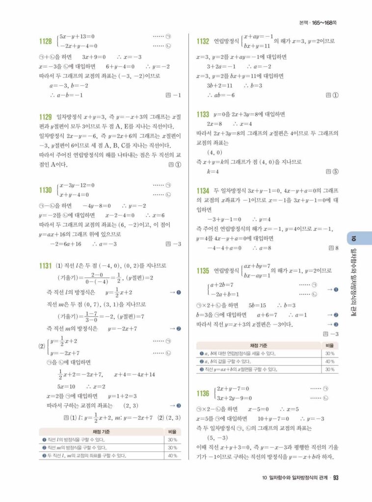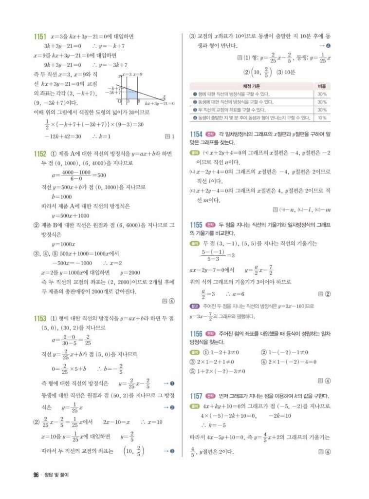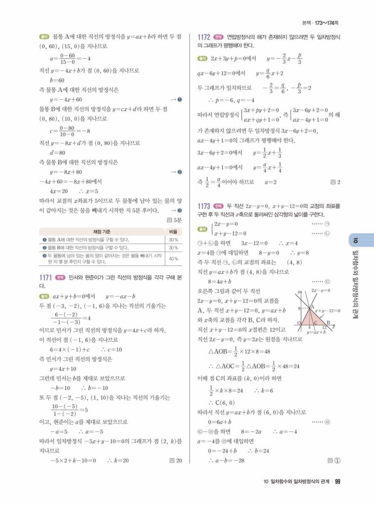 라이트쎈 중2-1 10. 일차함수와 일차방정식의 관계 답지