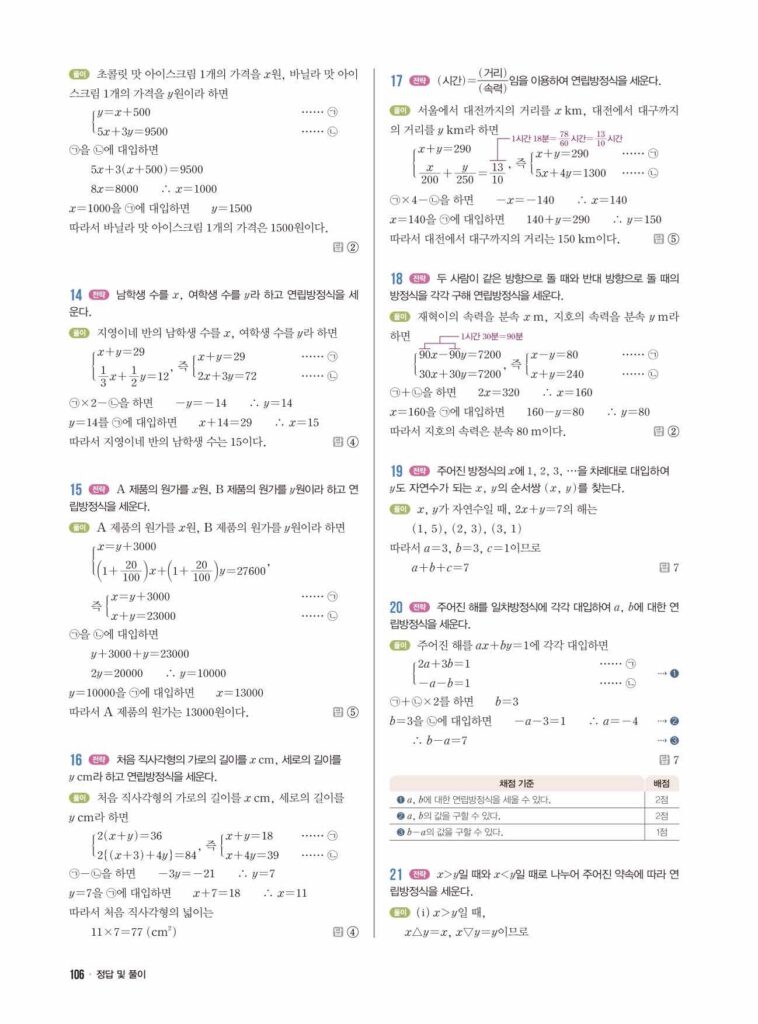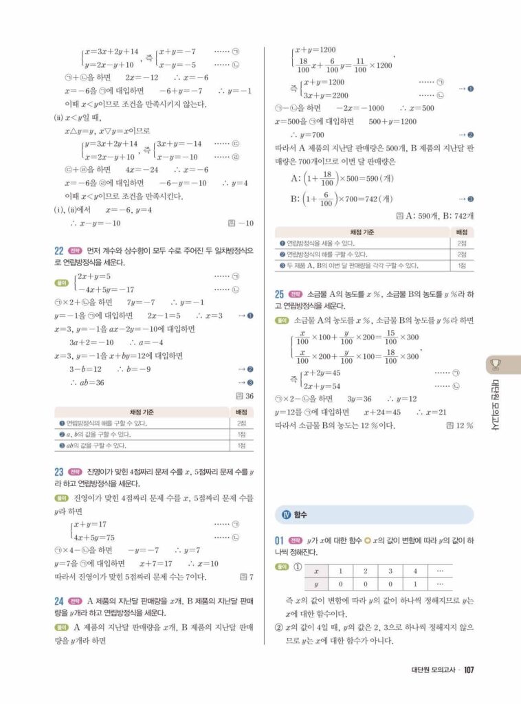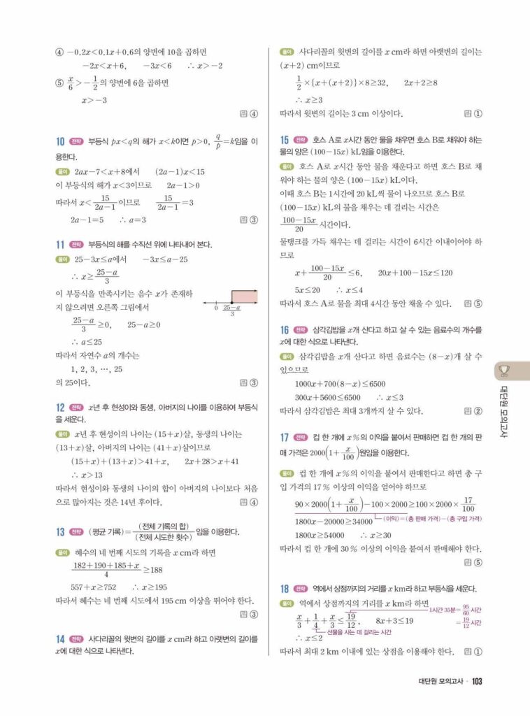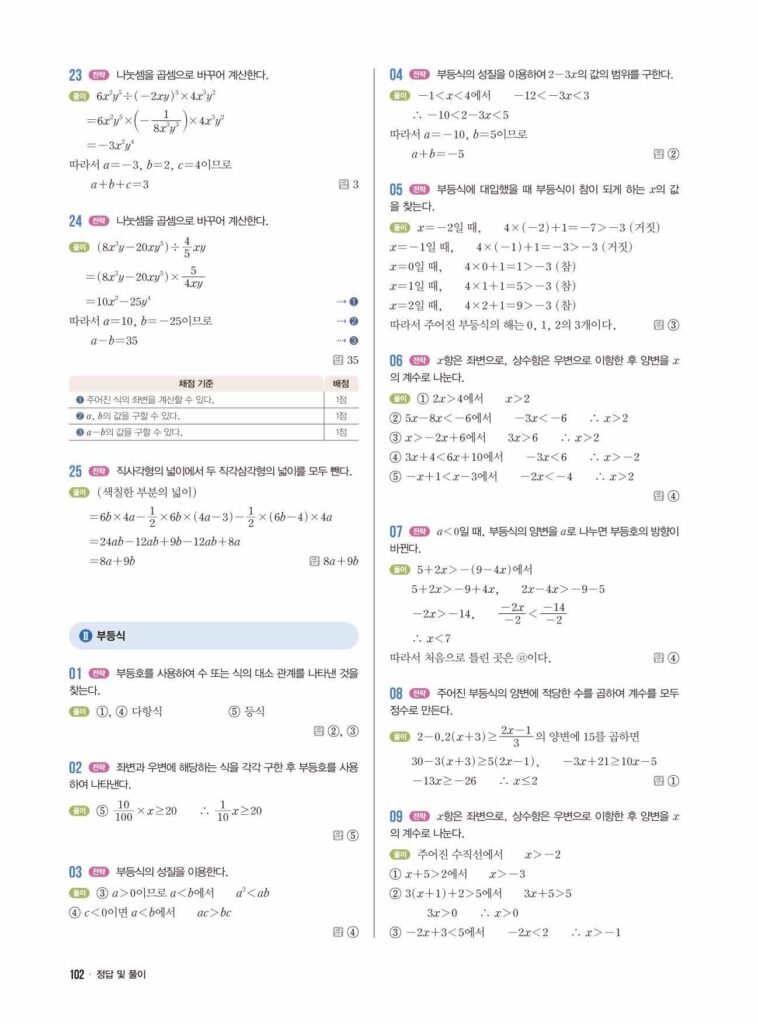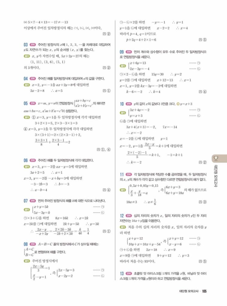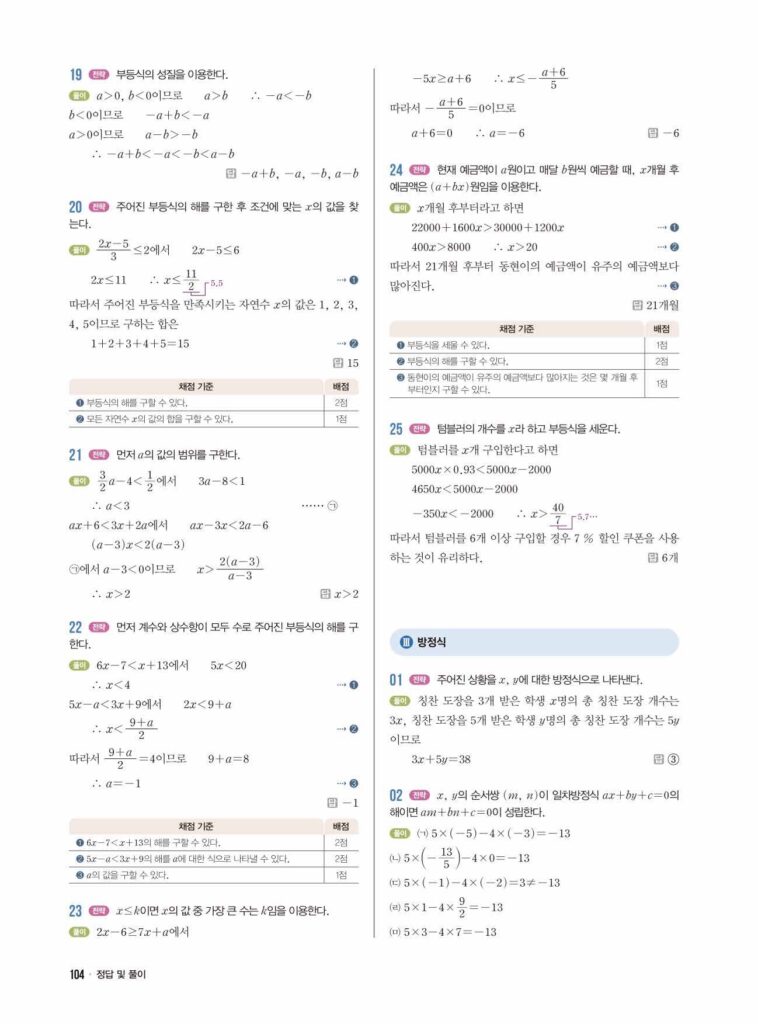 라이트쎈 중2-1 10. 일차함수와 일차방정식의 관계 답지