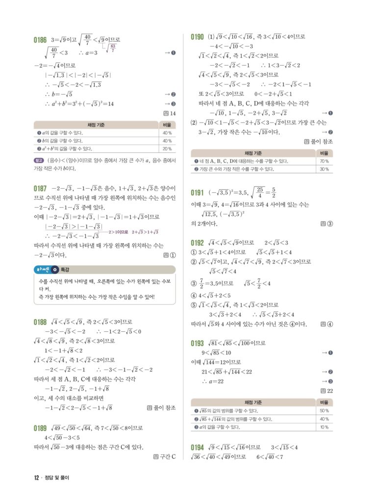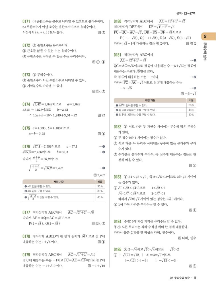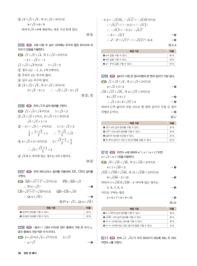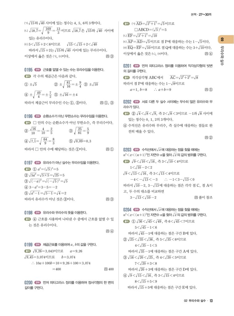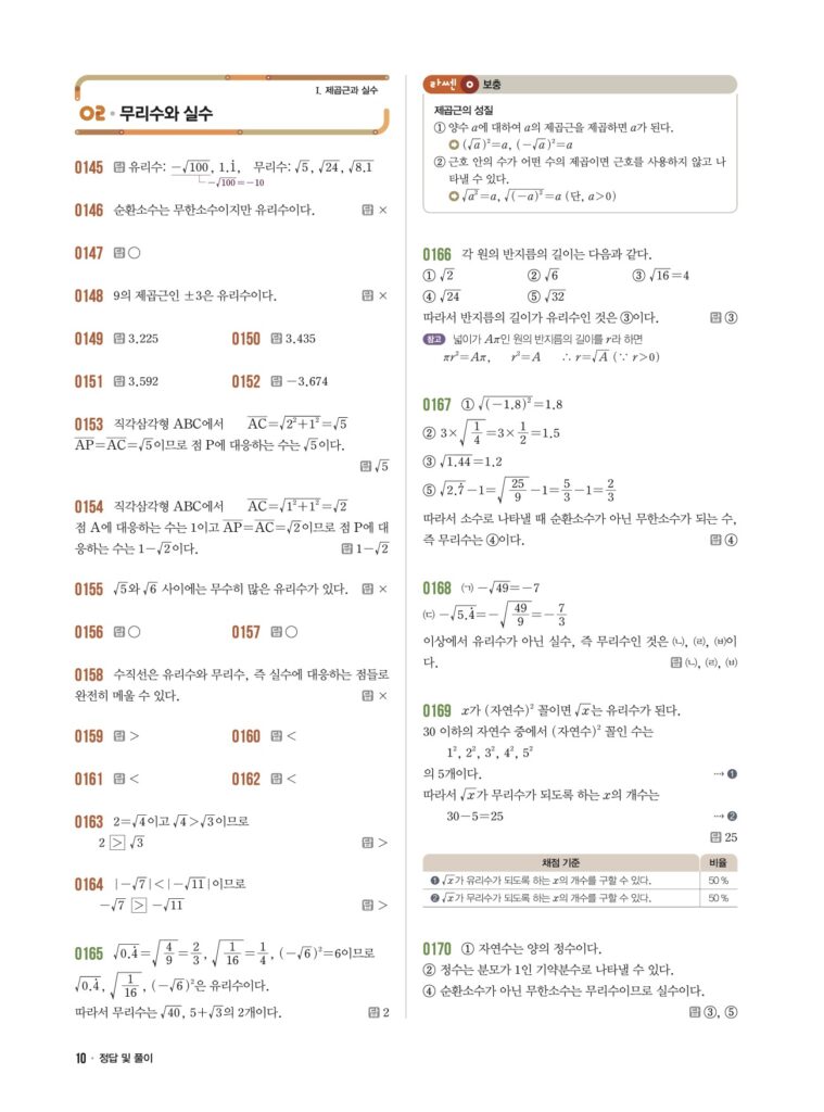안녕하세요. **라이트쎈 중3-1** **02단원 무리수와 실수** 정답 및 해설입니다.