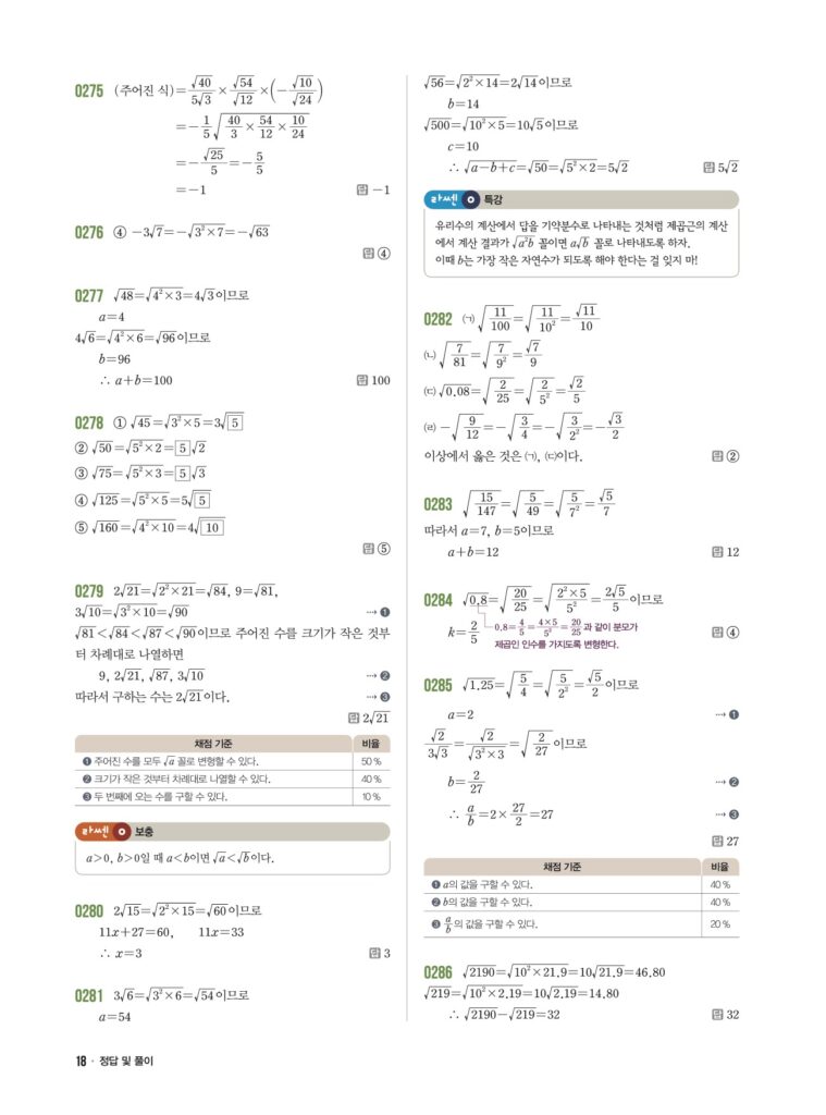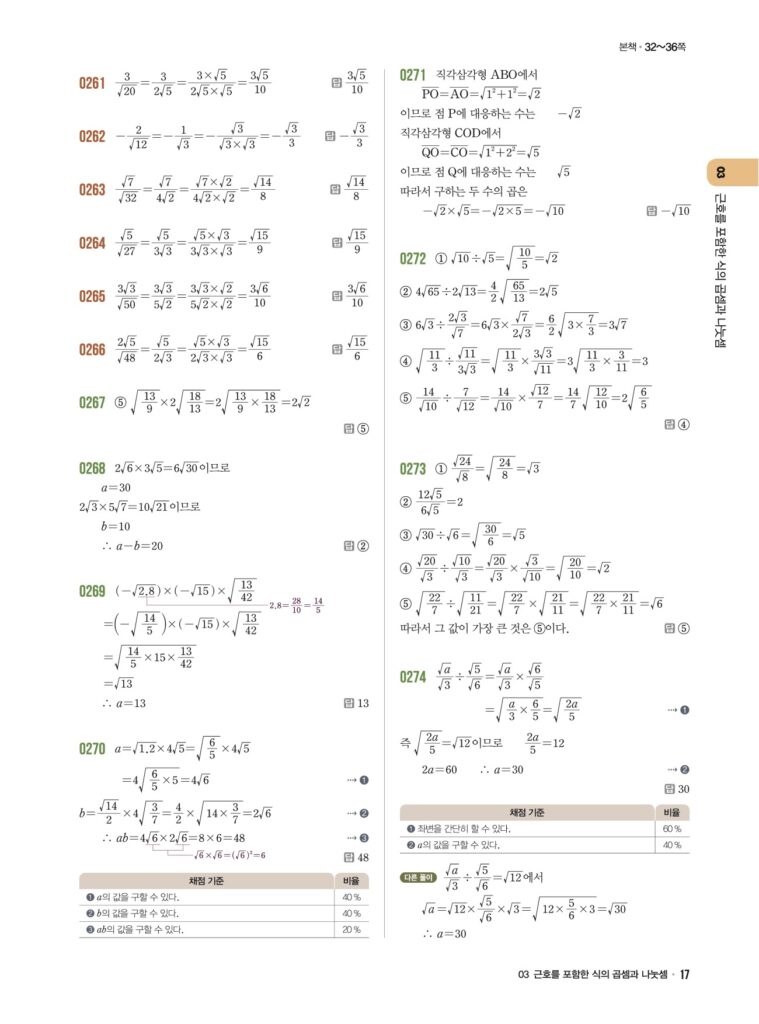 📖 근호를 포함한 식의 곱셈과 나눗셈 정답 및 해설