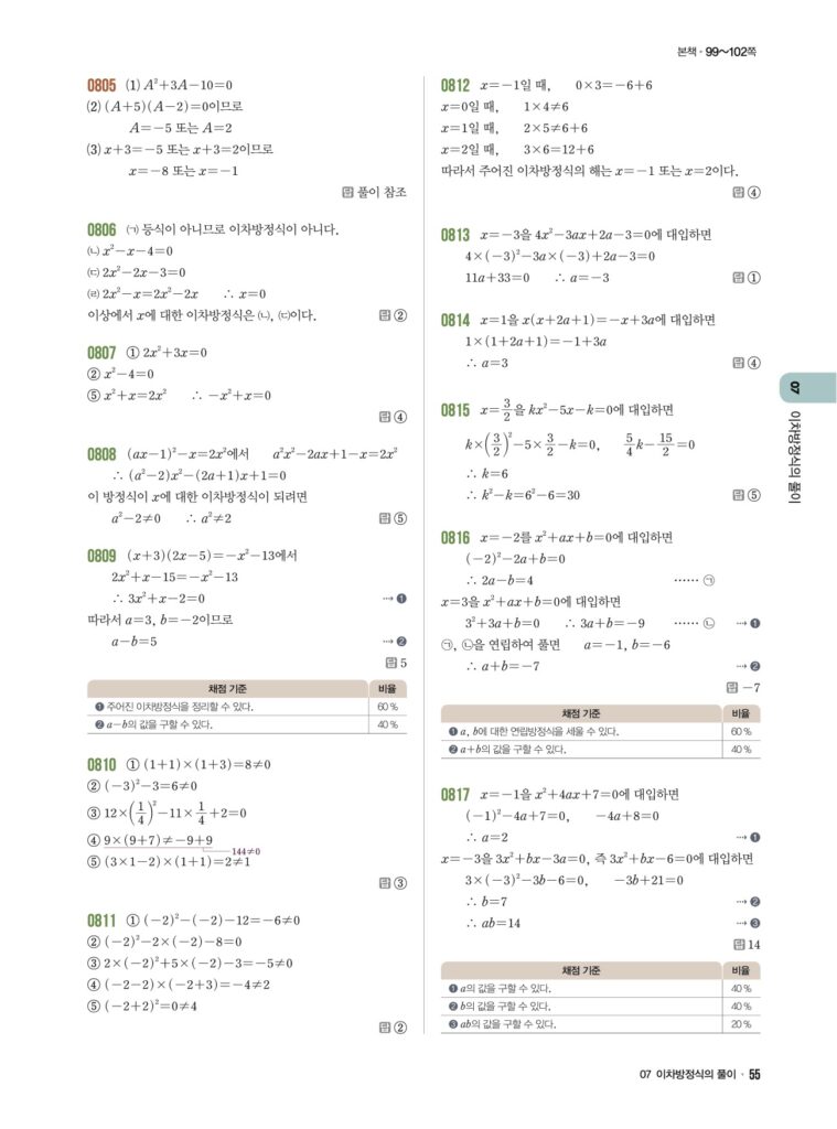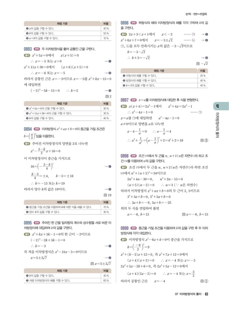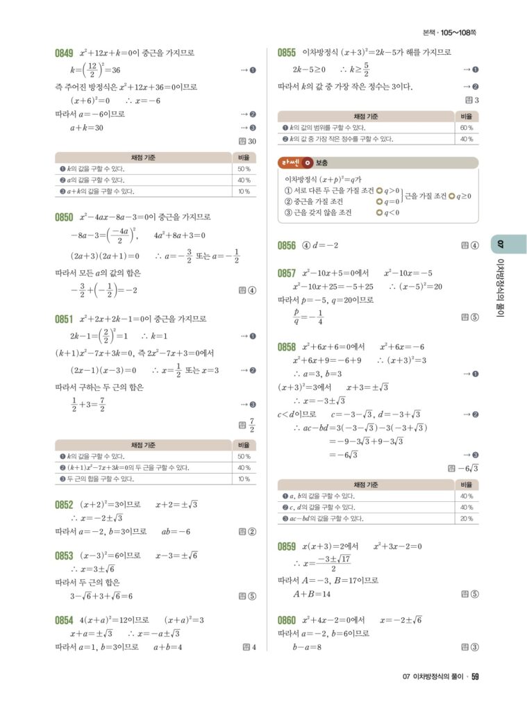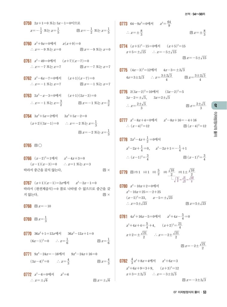 안녕하세요. **라이트쎈 중3-1** **07단원 이차방정식의 풀이** 정답 및 해설입니다.