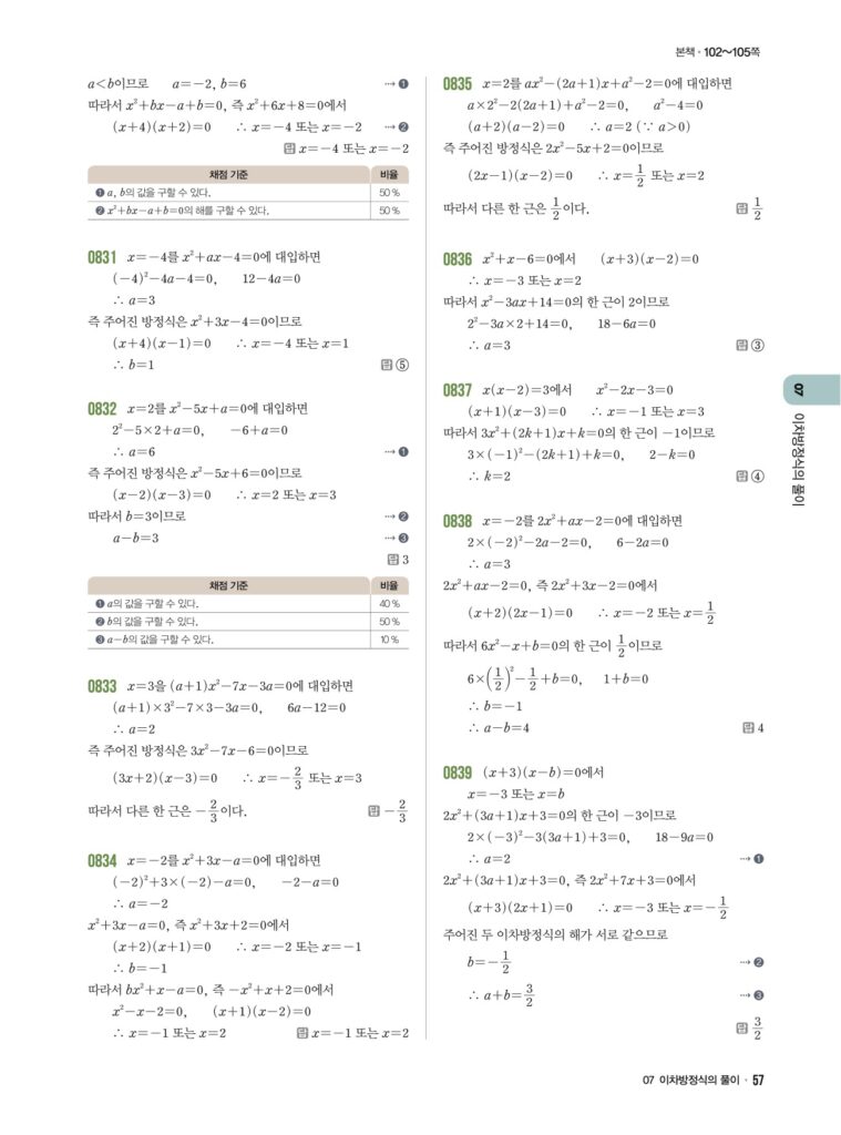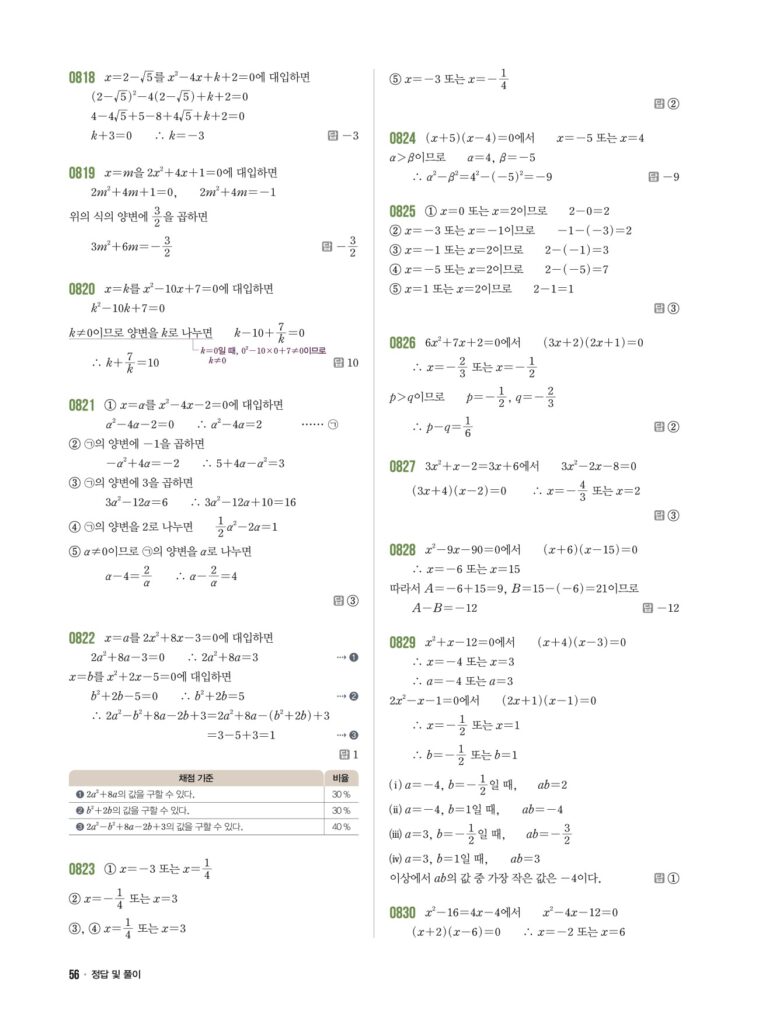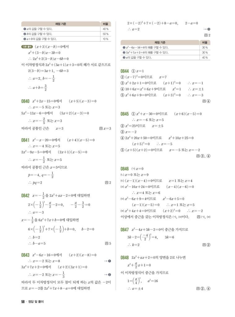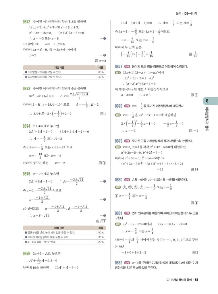 안녕하세요. **라이트쎈 중3-1** **07단원 이차방정식의 풀이** 정답 및 해설입니다.