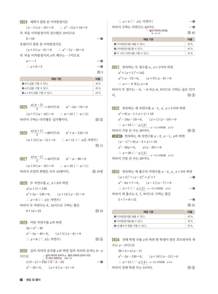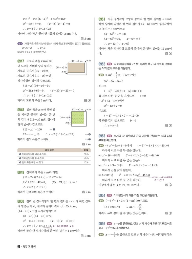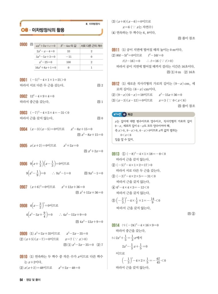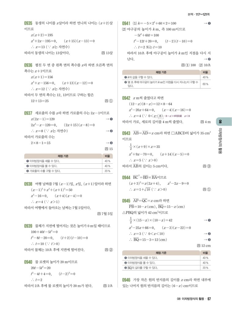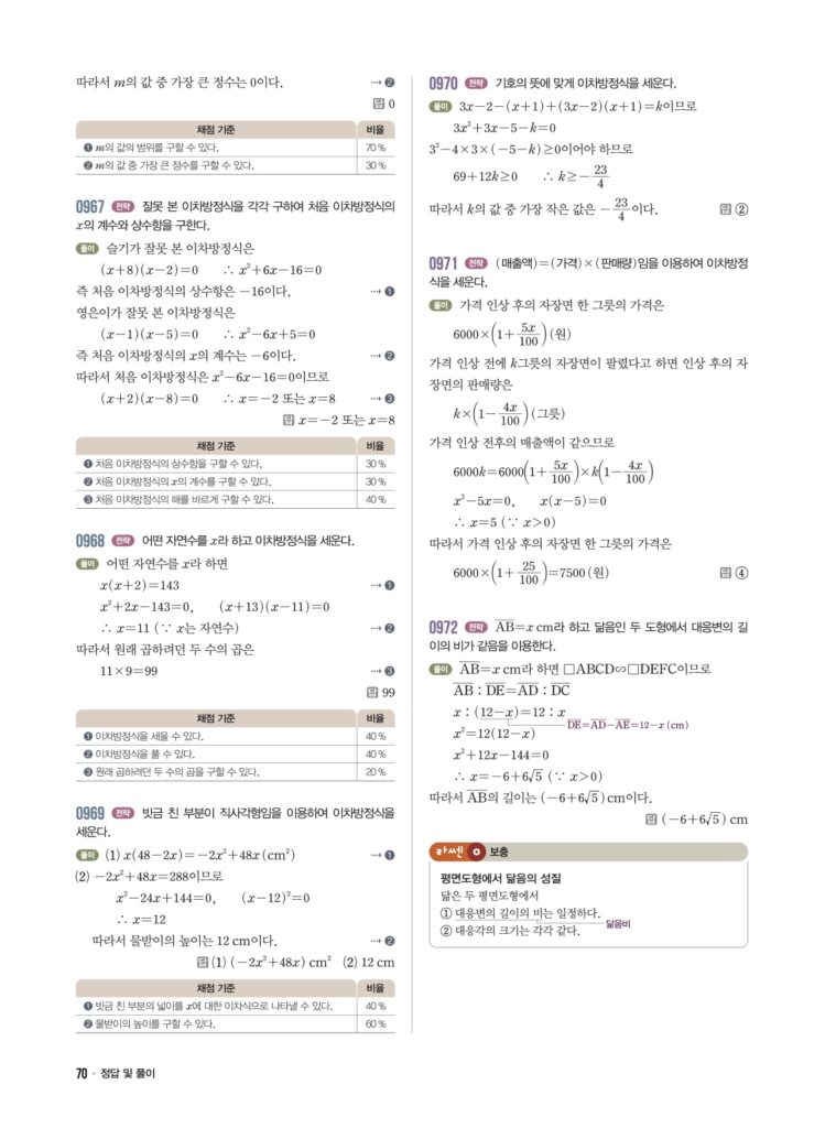 📖 이차방정식의 활용 정답 및 해설